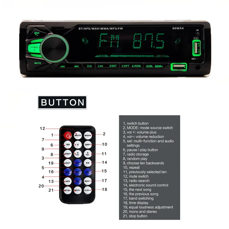 Remote controller: Support remote controller, you can control the unit by remote controller, start/stop/next/last the music or movie, radio, turn on/off the unit.