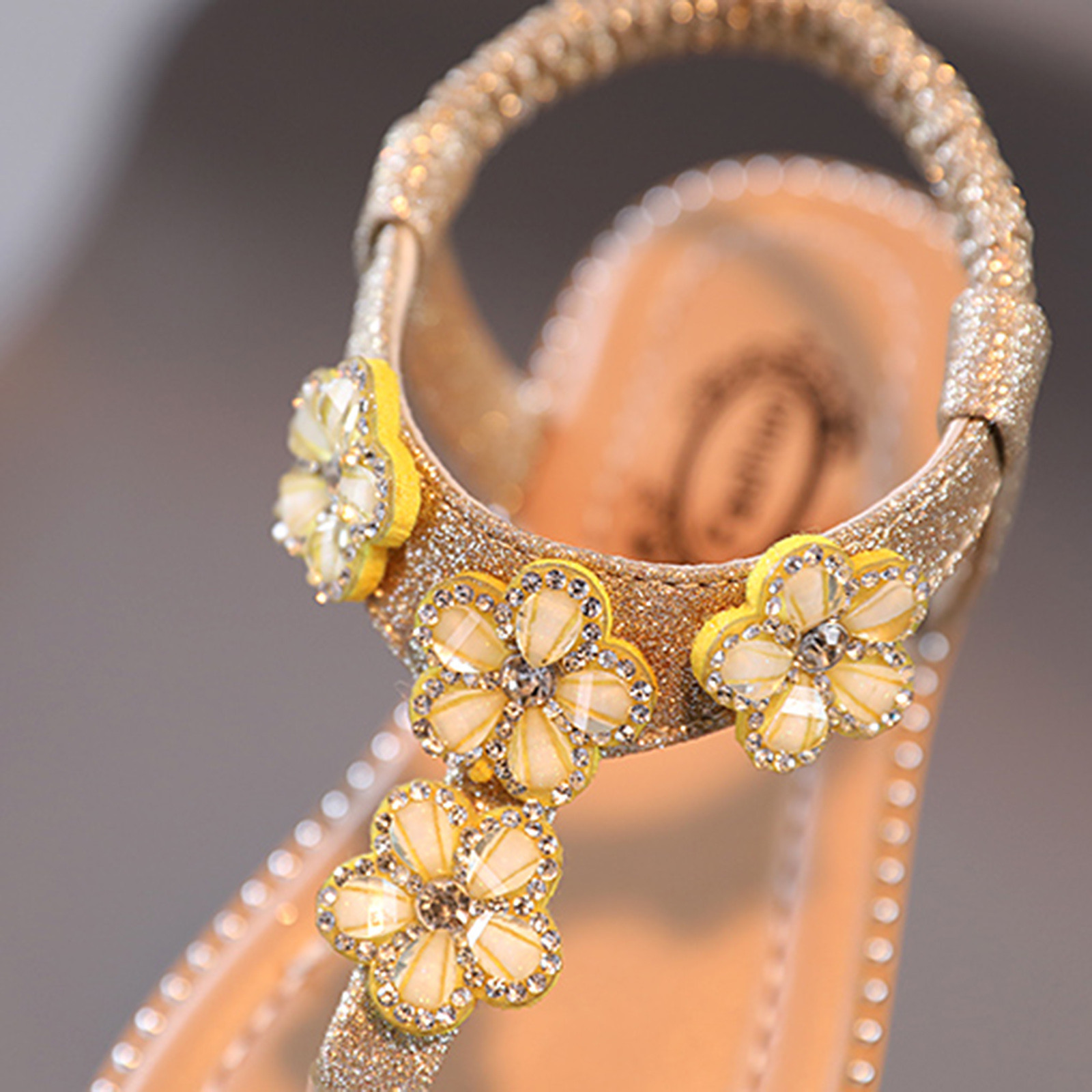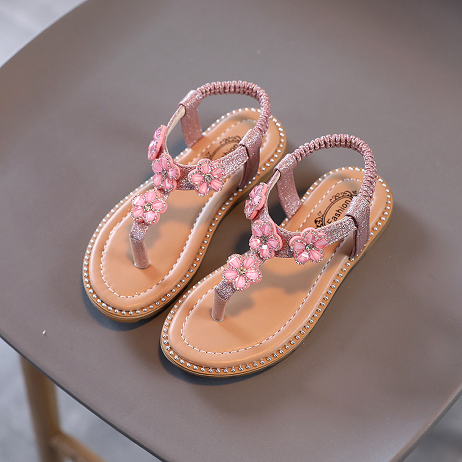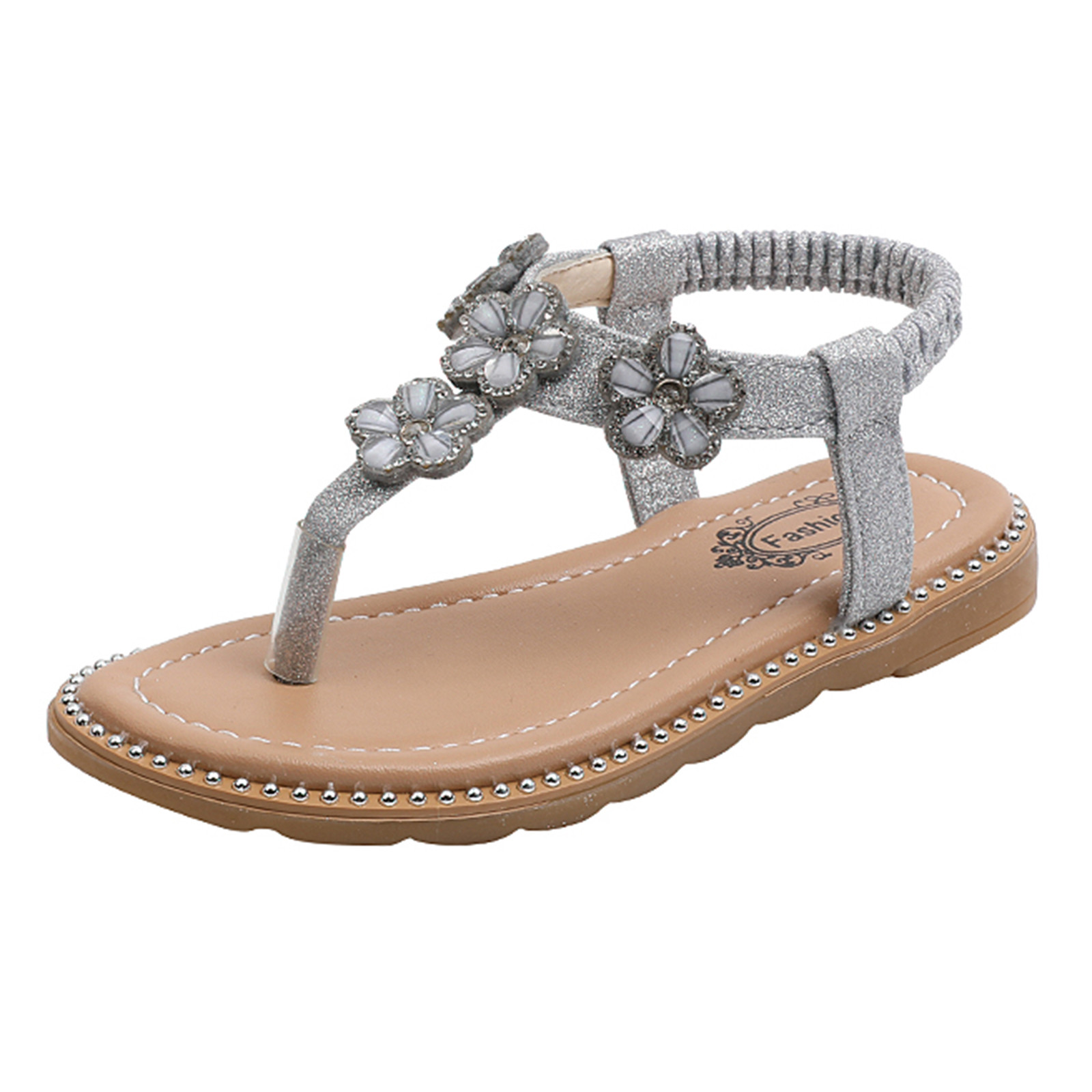 Сандалии-Вьетнамки с цветочным принтом и кристаллами для маленьких девочек