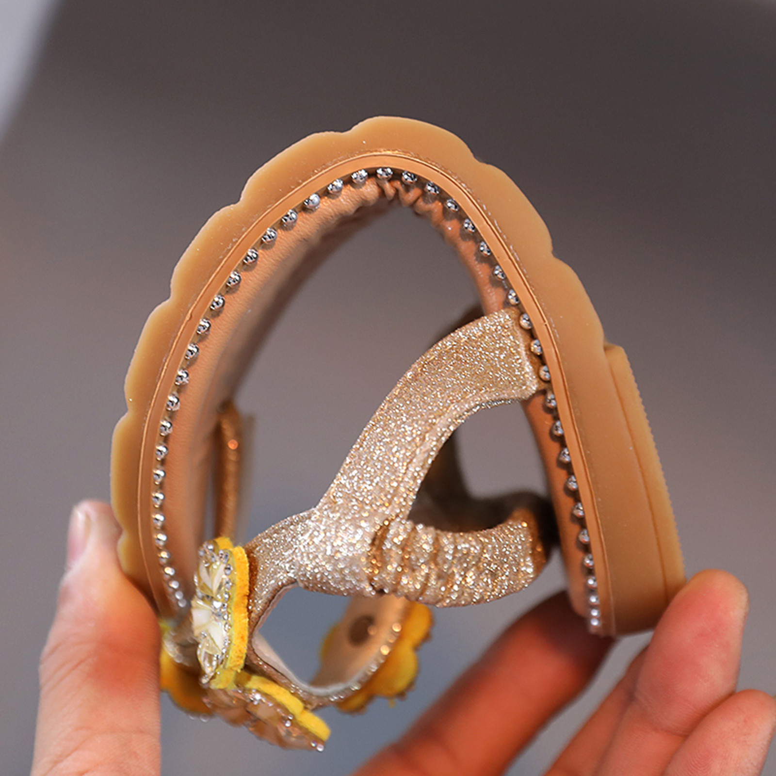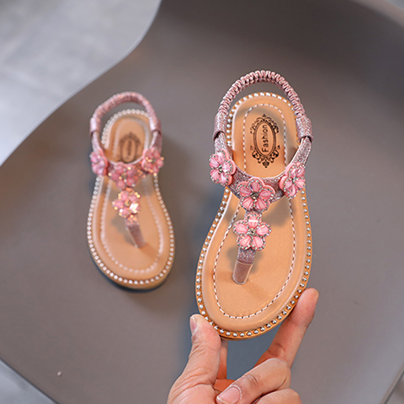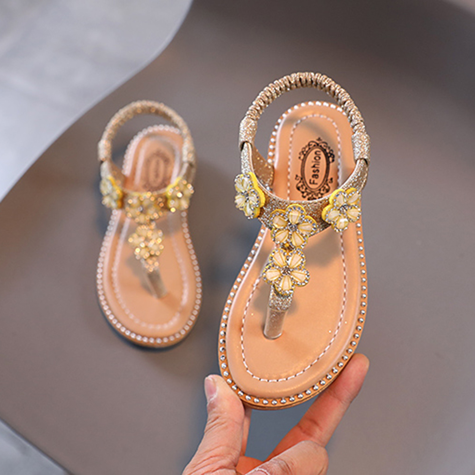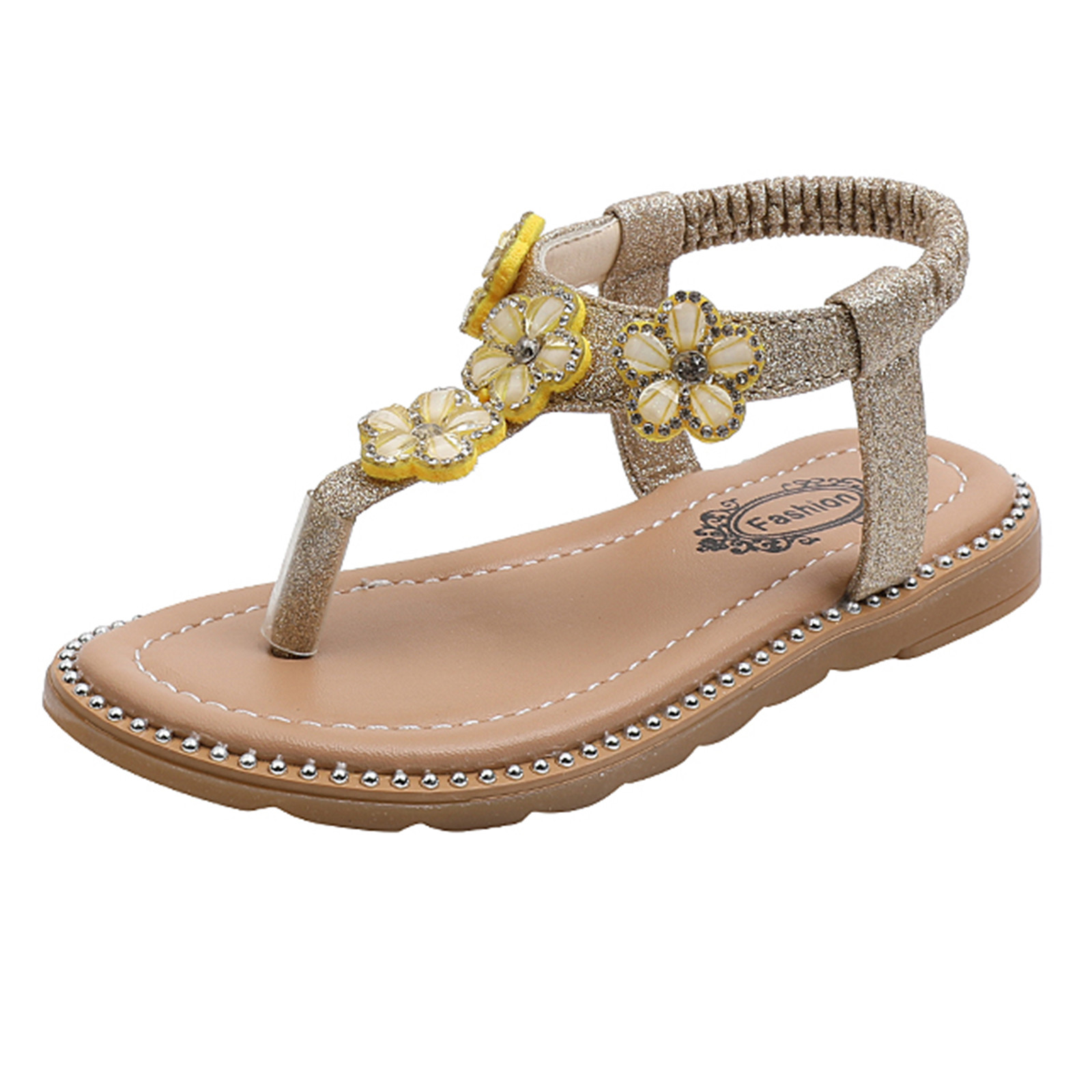 Сандалии-Вьетнамки с цветочным принтом и кристаллами для маленьких девочек