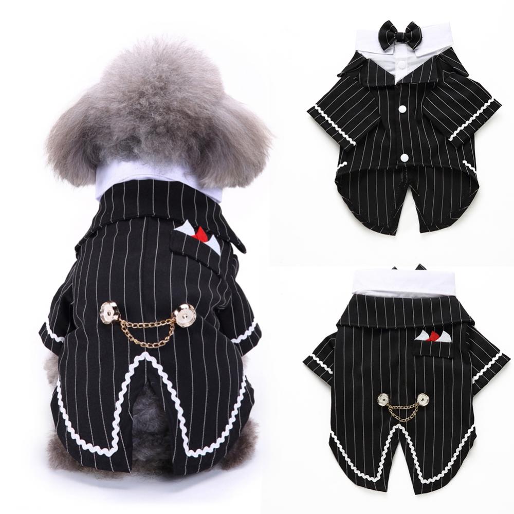 Милый полосатый бант для Собаки Щенок рубашка смокинг Свадебный костюм наряд