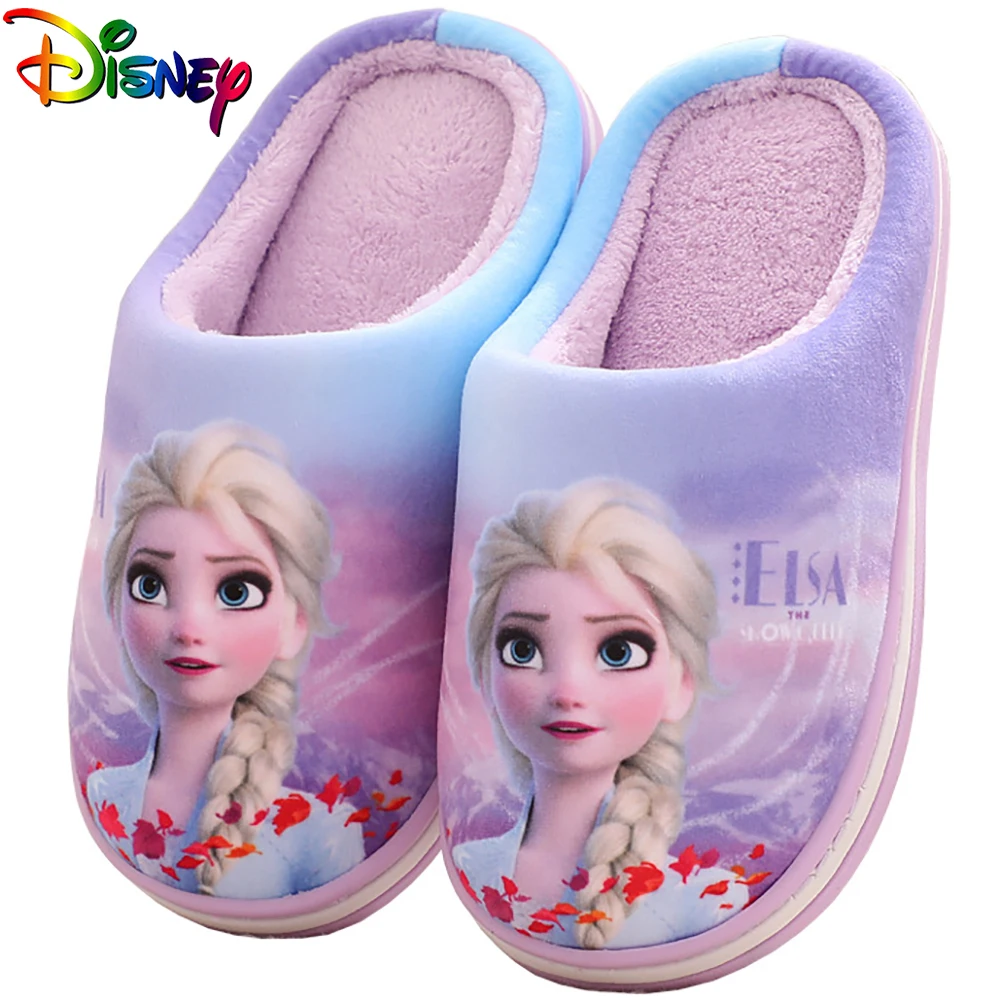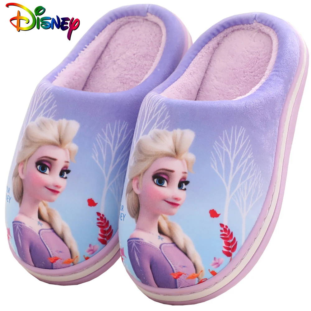 Disney/Детские домашние тапочки из хлопка с героями мультфильмов; Домашняя обувь принцессы Эльзы из мультфильма «Холодное сердце» для девочек; Мягкие теплые Нескользящие зимние 2021 для учащихсяCNY 217,8/Пара/Лот 1
