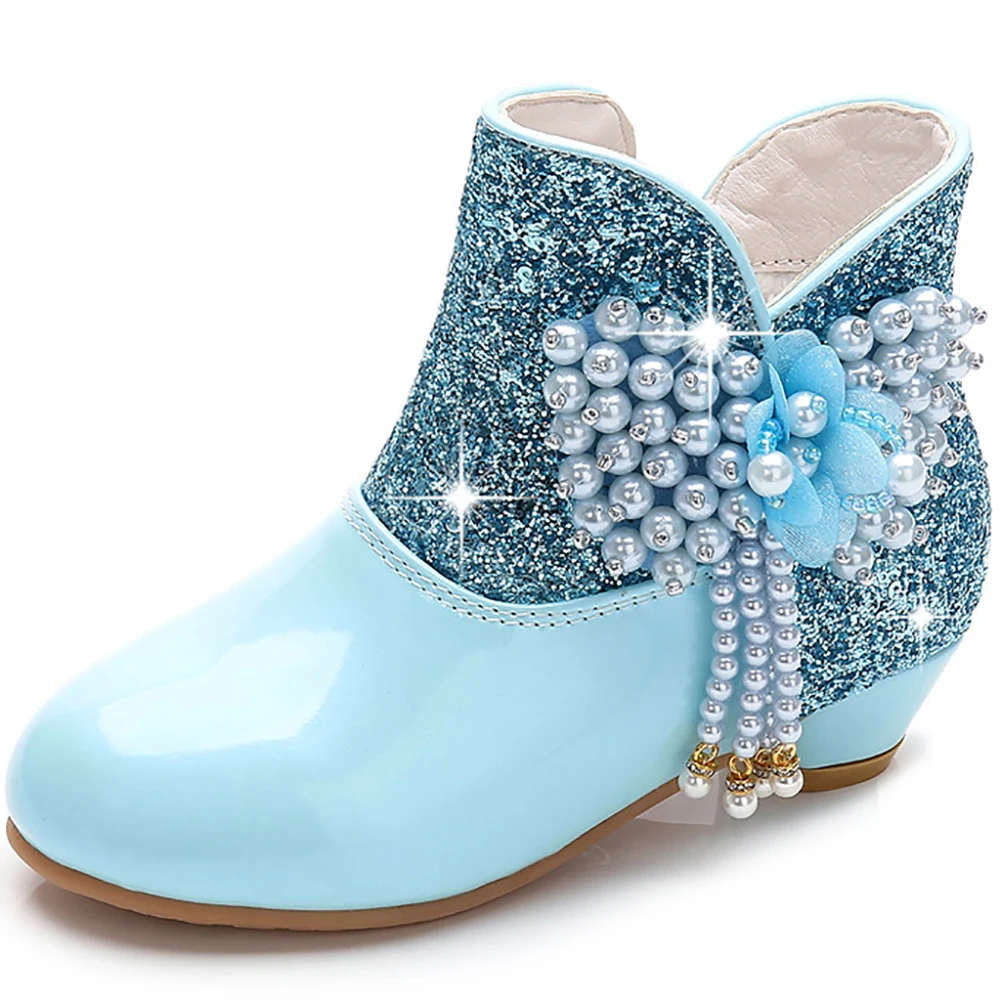 Осенне-зимние сапоги для девочек, Украшенные бусинами; Модная кожаная обувь; Вечерние свадебные туфли-лодочки принцессы для больших детей; 2021CNY 347,9/Пара/Лот 1