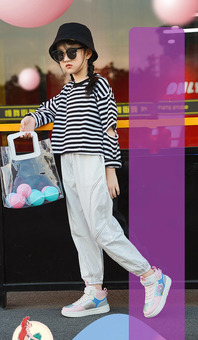 Disney/Детские повседневные кроссовки для малышей; Дышащие кроссовки для бега для девочек; Светильник с принтом русалки; Нескользящая спортивная обувьCNY 333,9/Пара/Лот 1