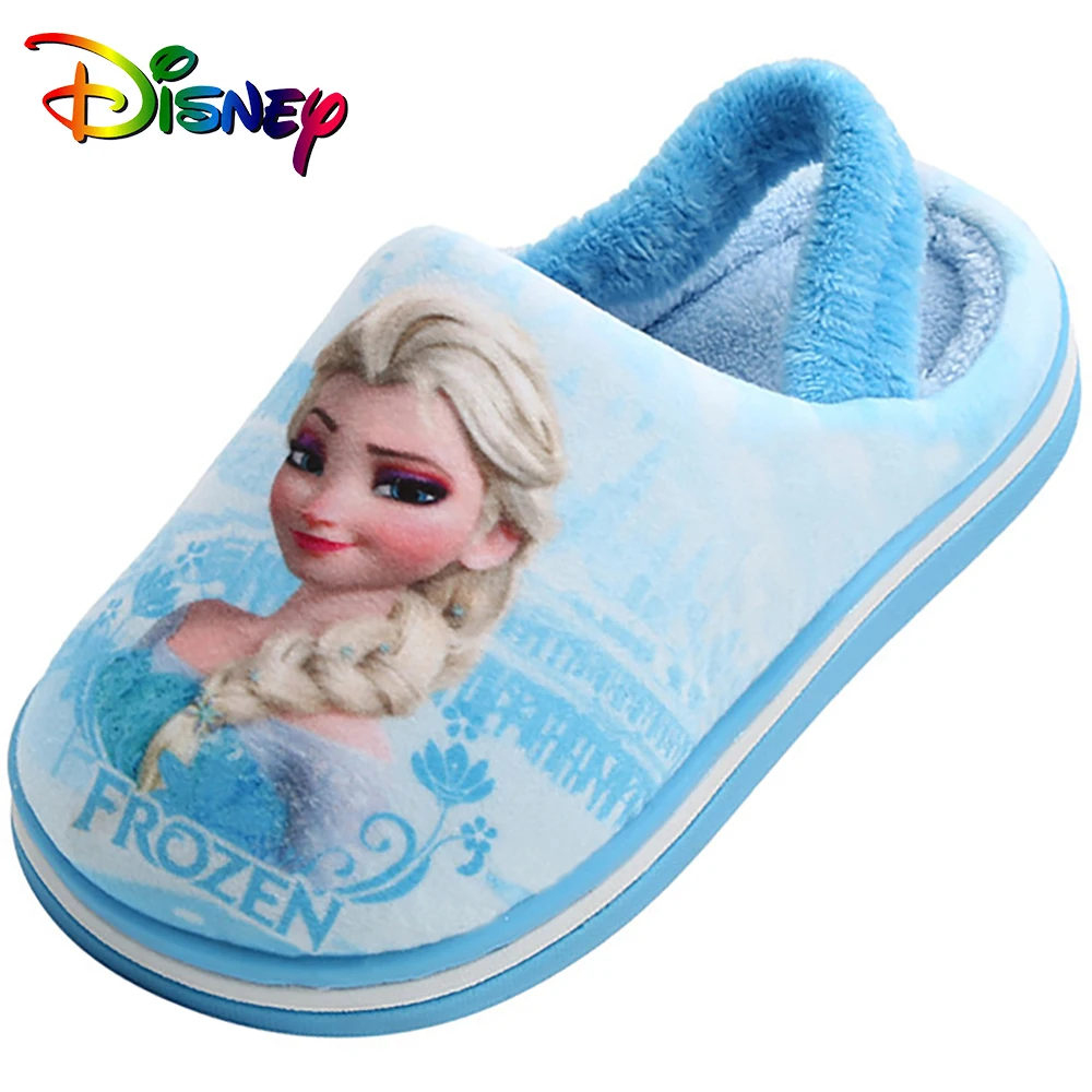 Детские домашние хлопковые тапочки для девочек с героями мультфильмов «Холодное сердце»; Домашняя обувь принцессы Эльзы; Детские повседневные теплые мягкие зимние ТапочкиCNY 161/Пара/Лот 1