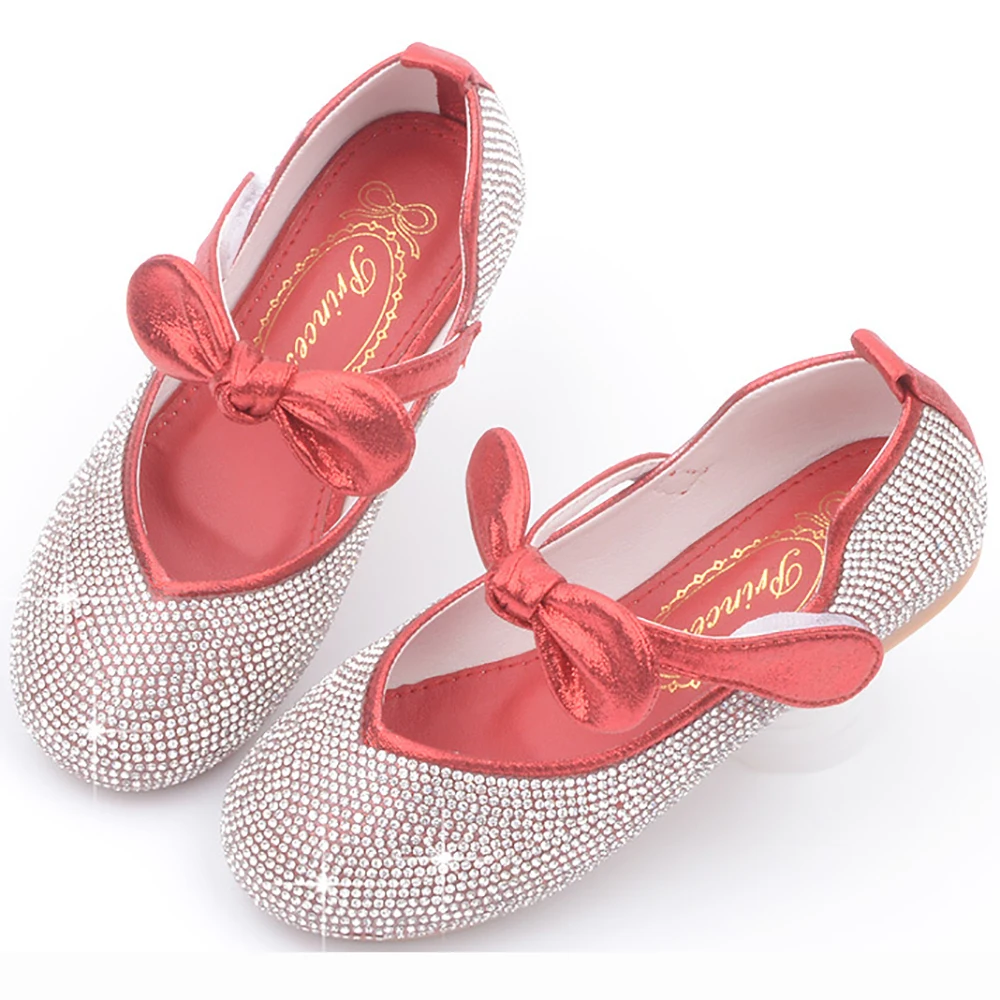 Шикарные кожаные туфли принцессы для девочек; Детские Свадебные вечерние Нескользящие сандалии со стразами и бантом; Модная обувь на плоской подошве с бабочками для больших детей; Новинка 2021 годаCNY 245,3/Пара/Лот 1