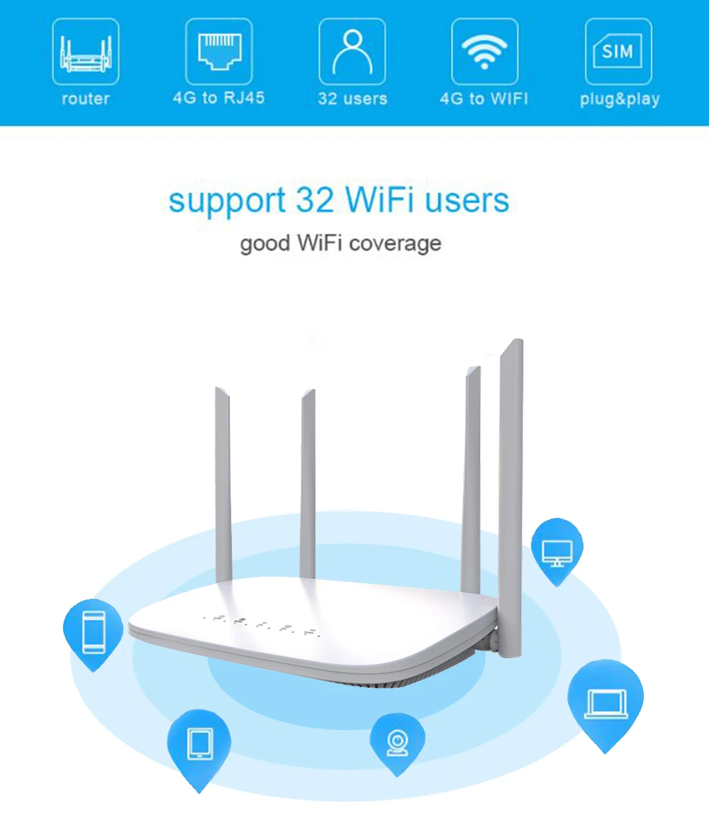 3, оснащен 4 LAN интерфейсом, когда 4G маршрутизатор передает WiFi, вы можете подключиться к другим устройствам одновременно.