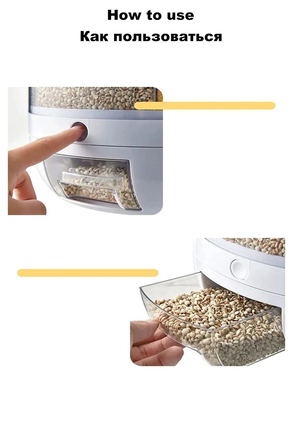 【DETAILS】 нажатием одной кнопки, интеллектуальный количественный сбор риса, слегка выдавливает рис, собирая в соответствии с количеством, без отходов. Верхняя крышка может быть удалена для облегчения добавления зерна.