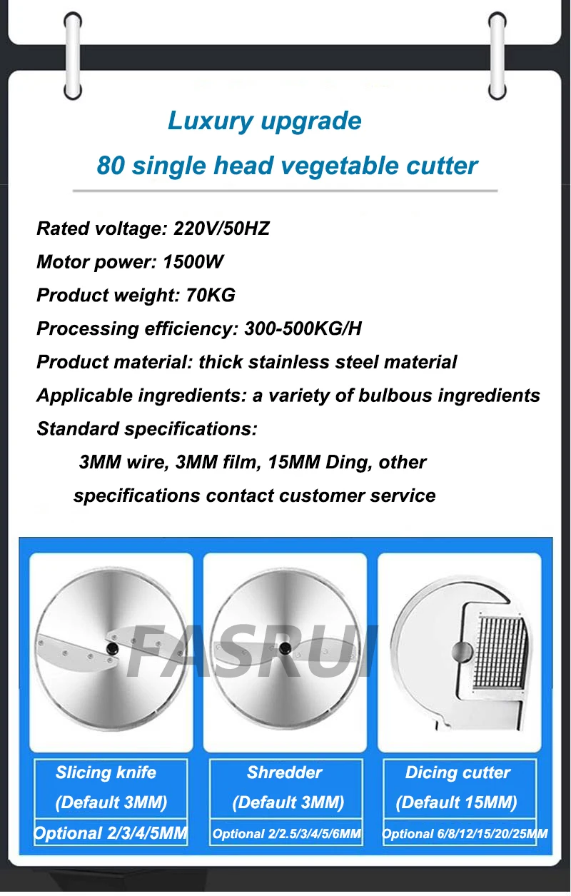 1. Многофункциональная машина, может резать листовые овощи и корневые овощи, и может нарезать, шелк, полосу, нарезанные кубиками, сегмент, сломанные и т. Д.