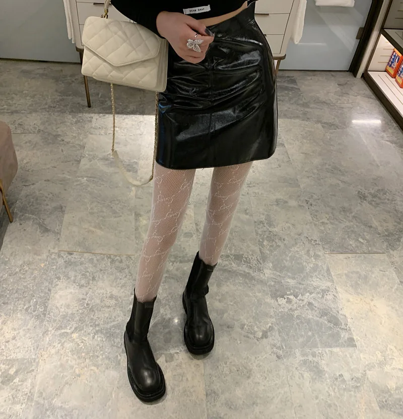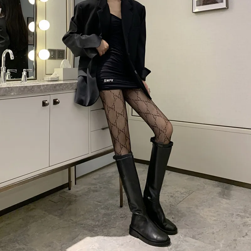 Модные новые сексуальные теплые длинные хлопковые Роскошные чулки выше колена с буквенным принтом, женские весенние вязаные колготки до бедра