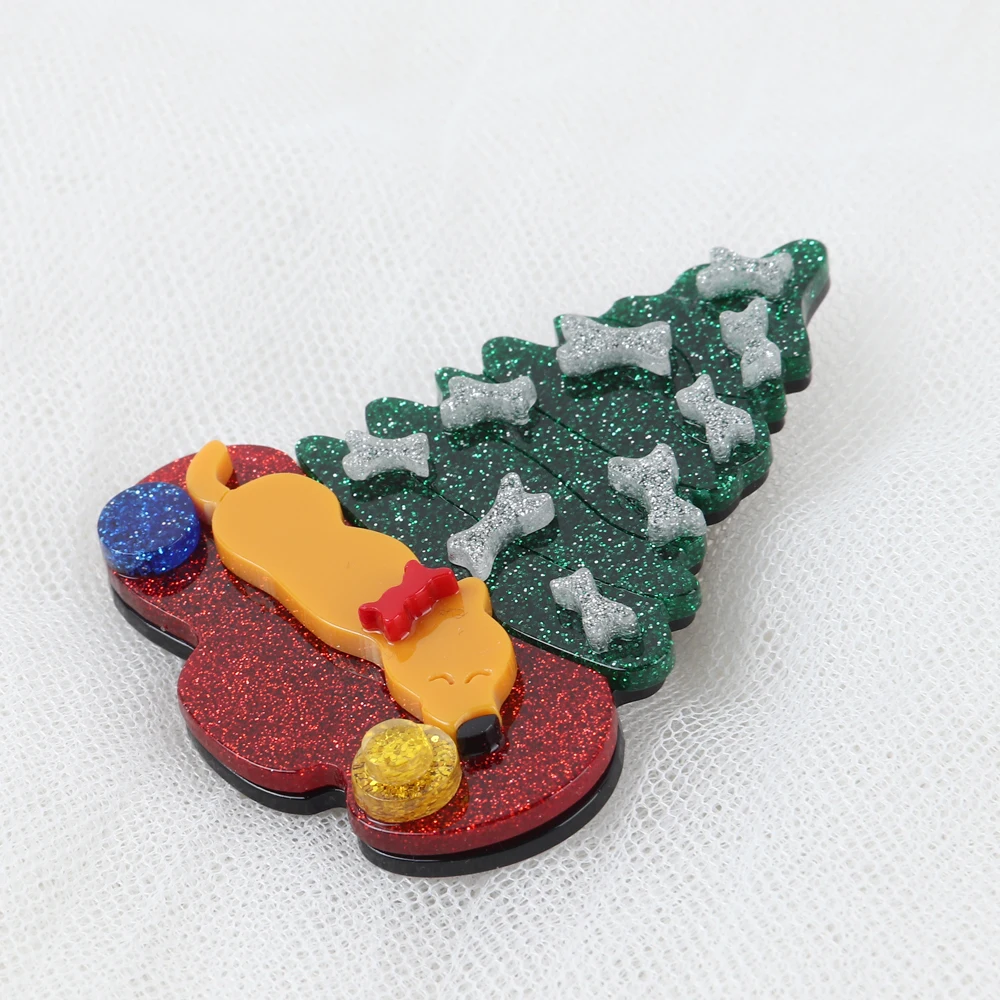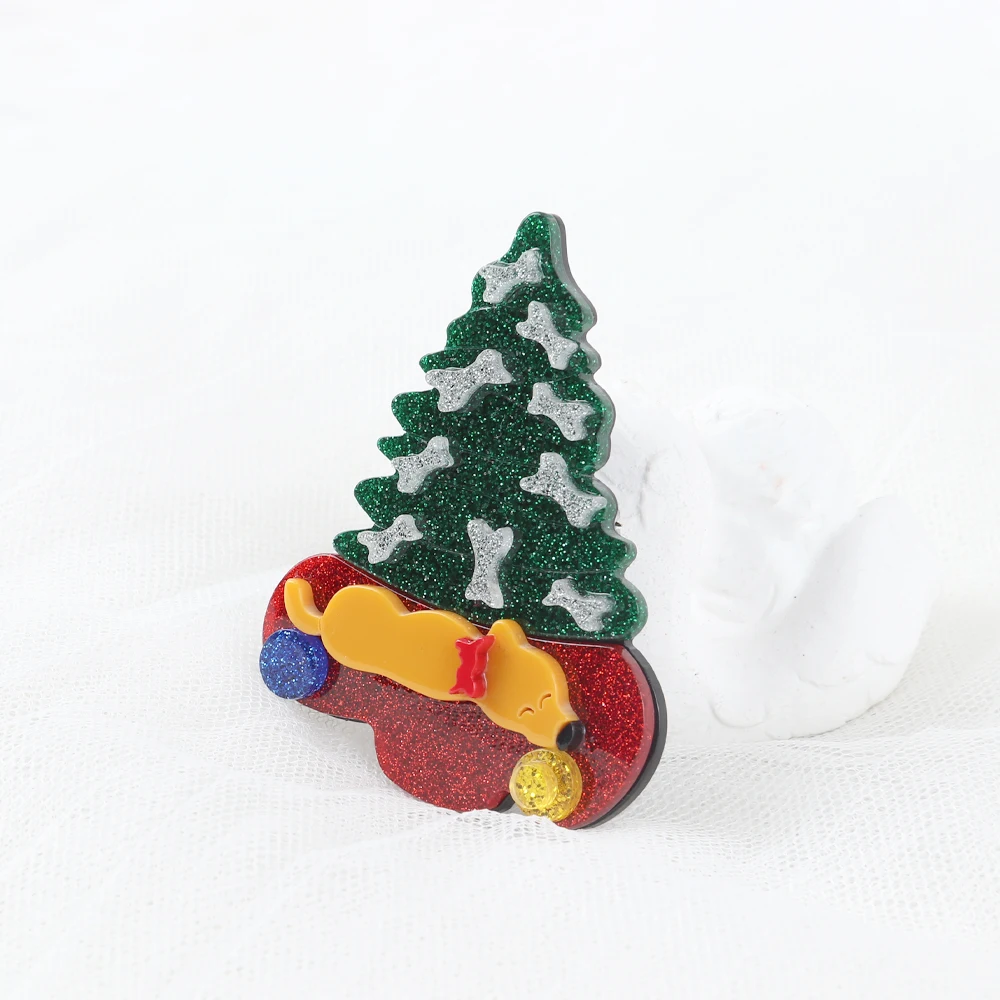Фишовца Новое поступление собачья кость Рождественская елка акриловая брошь булавки для женщин Санта-елки рождественские подарки Новогодние аксессуары ювелирные изделия