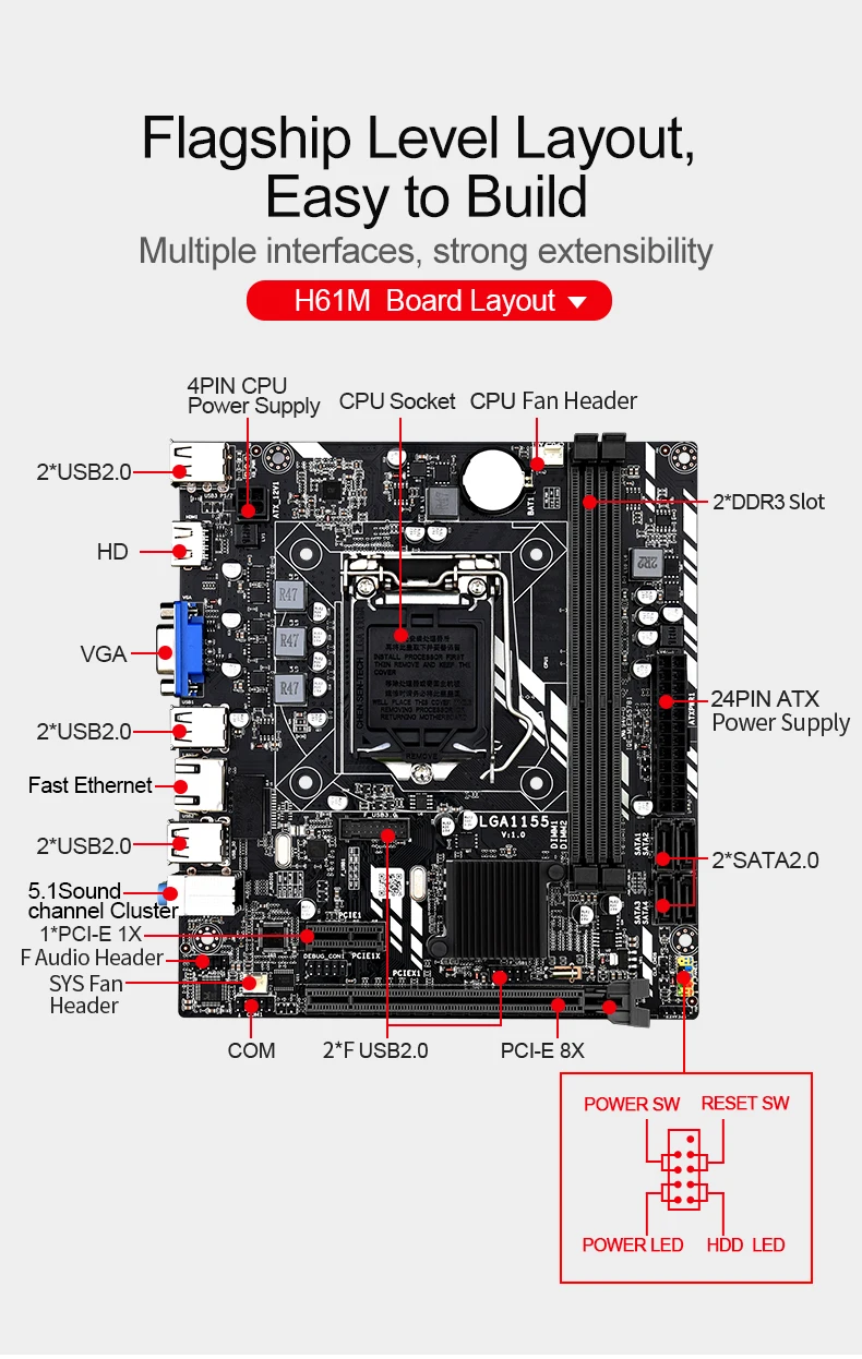 Поддержка ЦП: поддержка полного диапазона процессоров Intel 1155 Corei7 / i5 / i3 / Pentiun / Celeron (поддержка трех поколений ЦП)