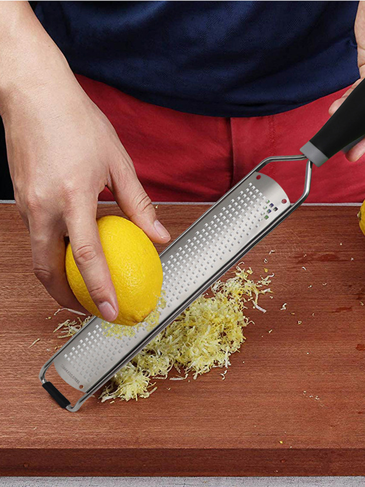 1. The grater is suitable for fruits, such as lemon, lime, ginger, coconut, orange, chocolate, and even spices such as cinnamon or garlic.