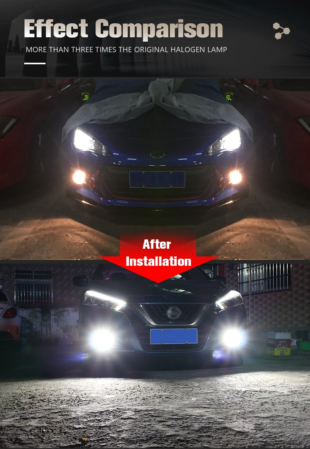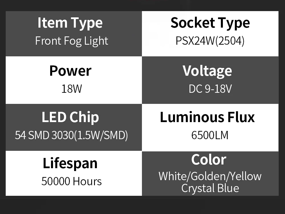 Посылка включает в себя: 2 светодиодных противотуманных фары