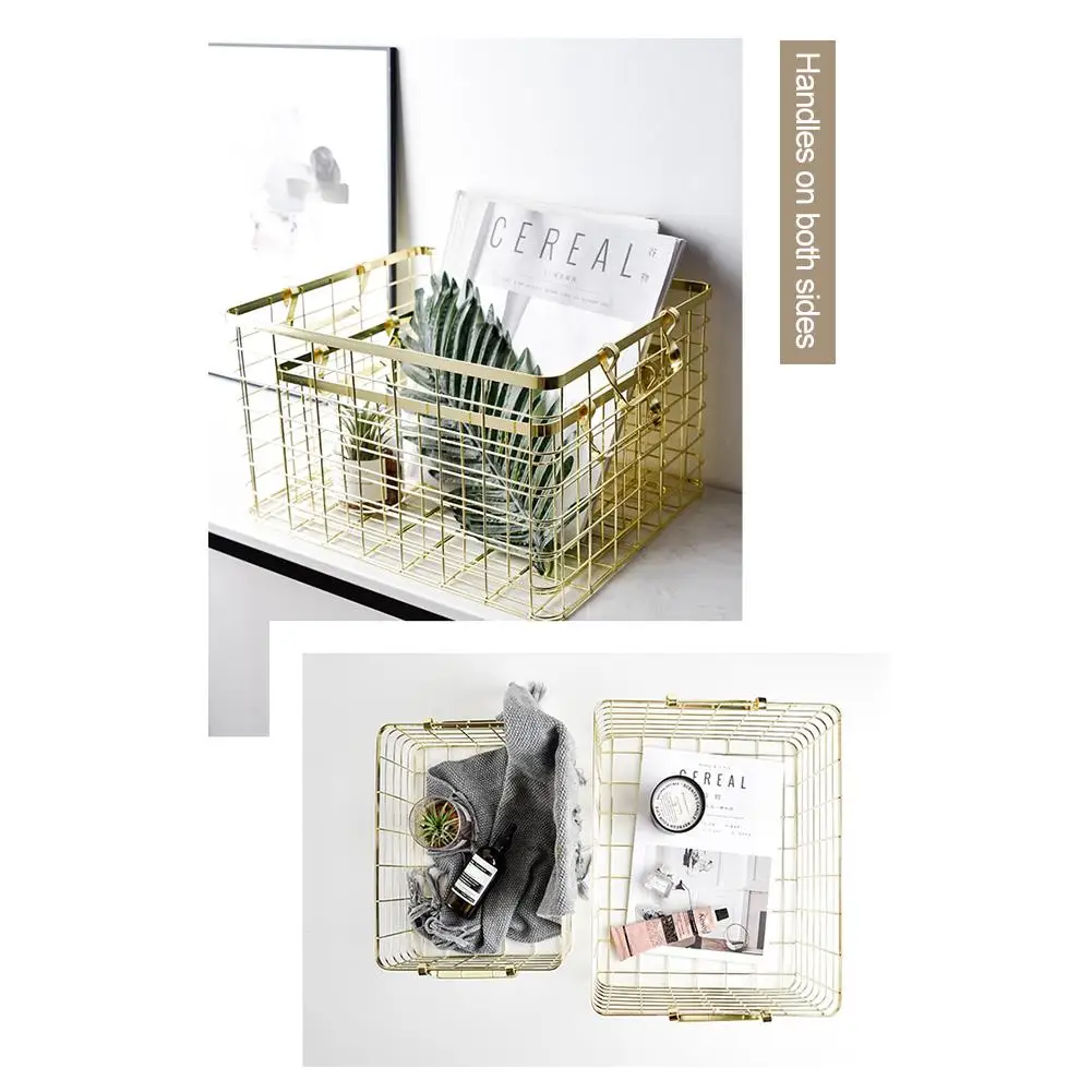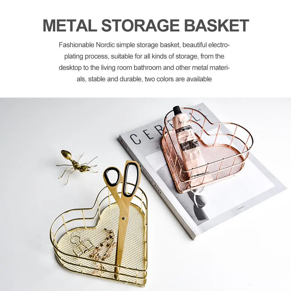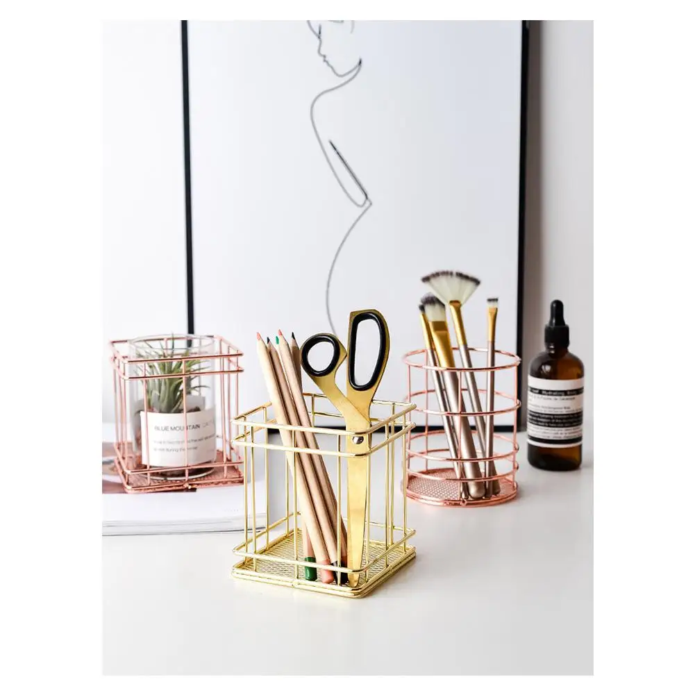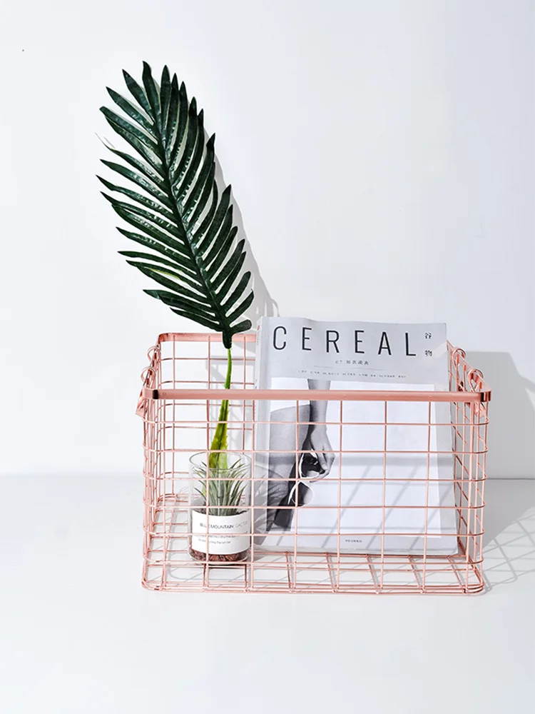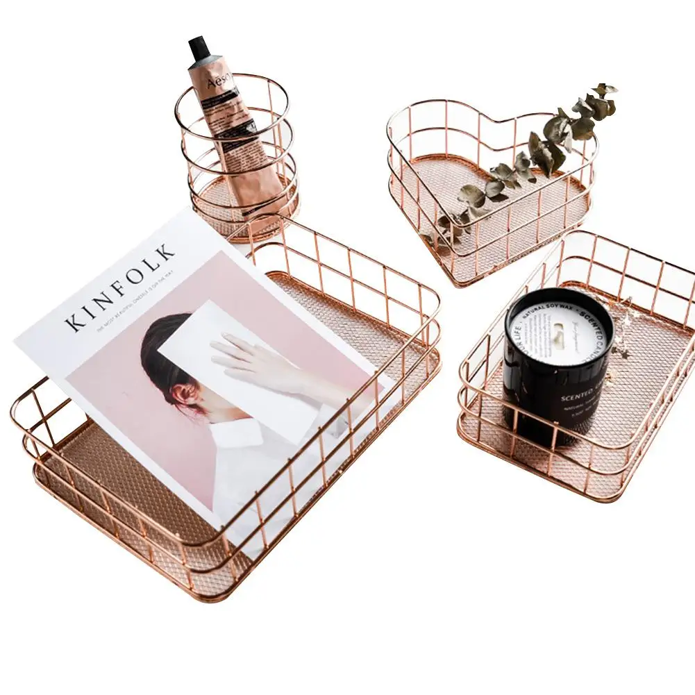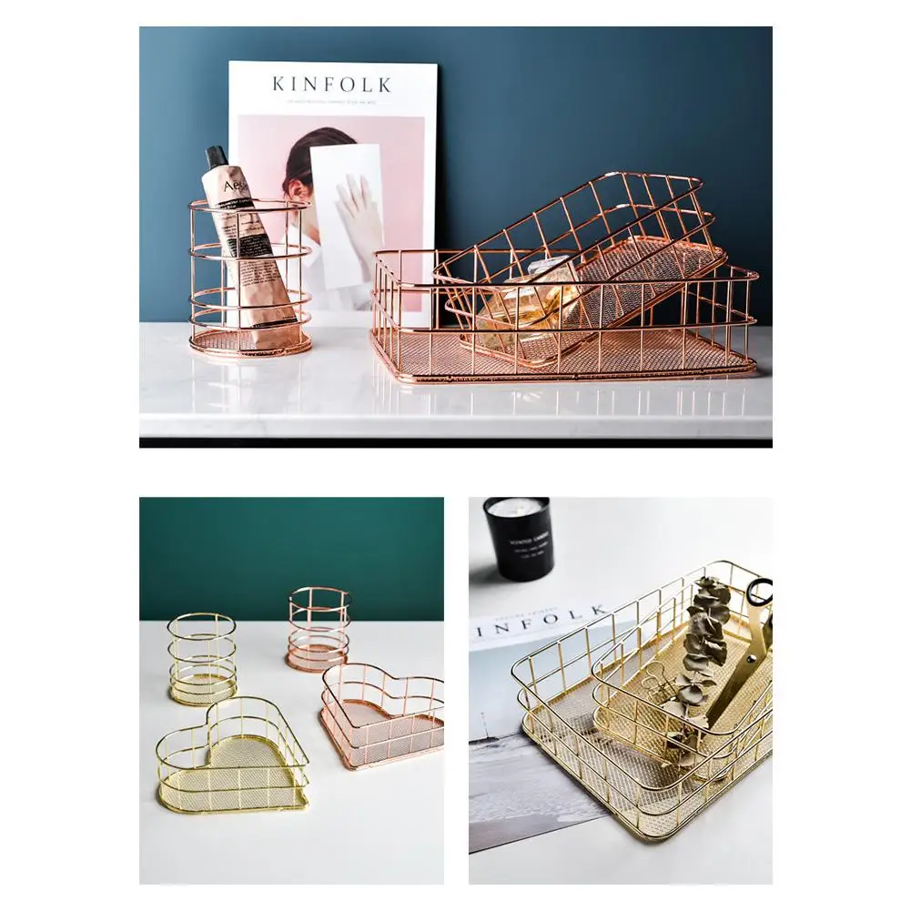 Розовое золото, железный художественный скандинавский органайзер для макияжа, корзина, подводка для глаз, набор кистей для хранения, туалетный столик, макияж, косметический Органайзер, коробка