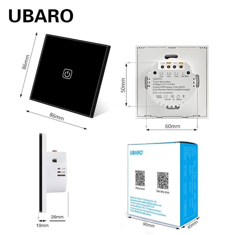 Сенсорный выключатель из закаленного стекла