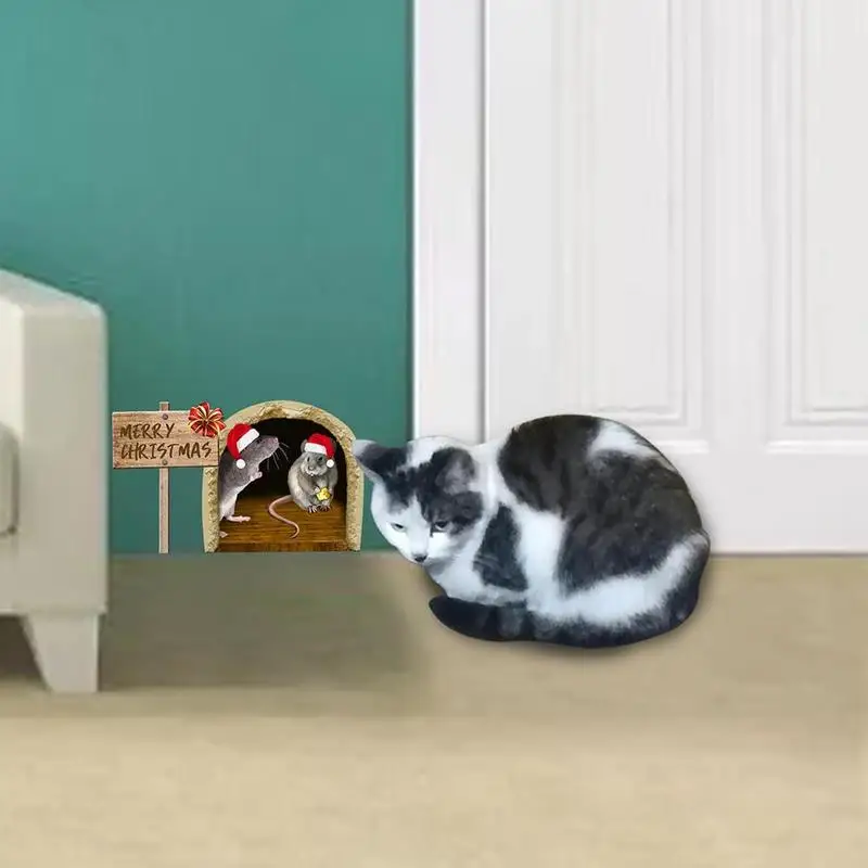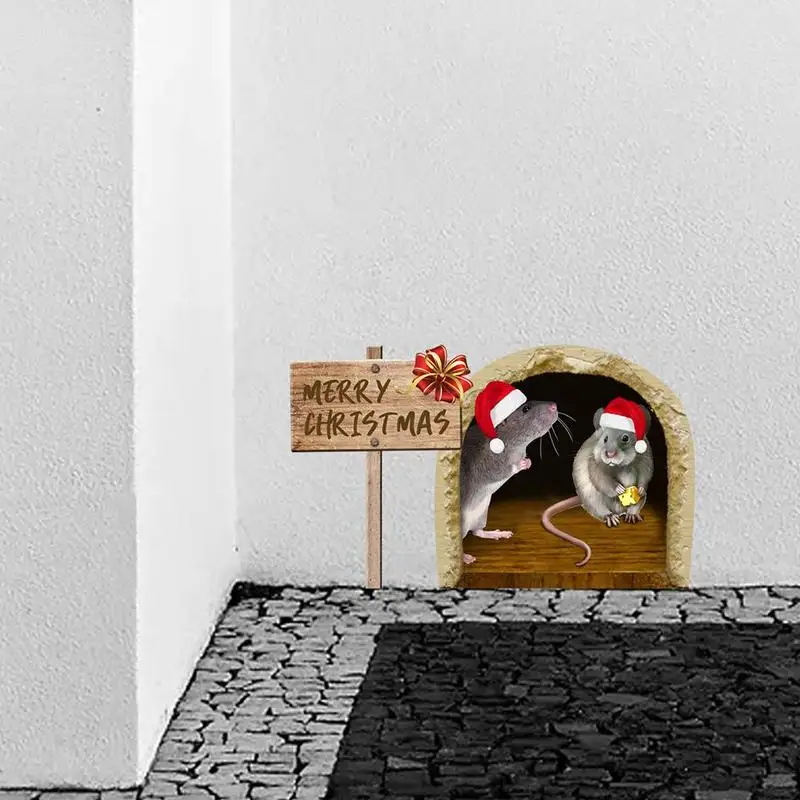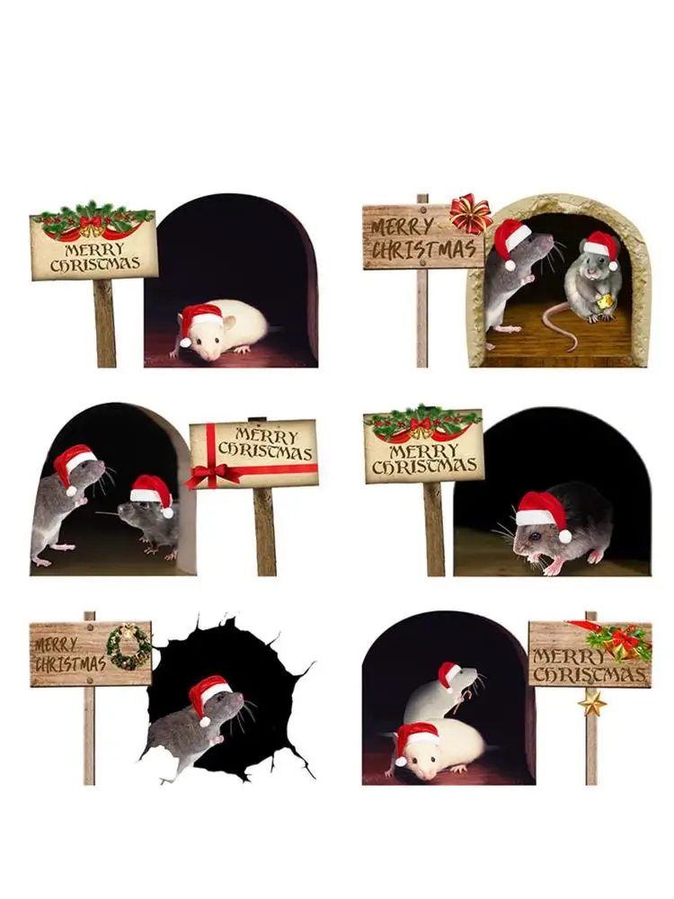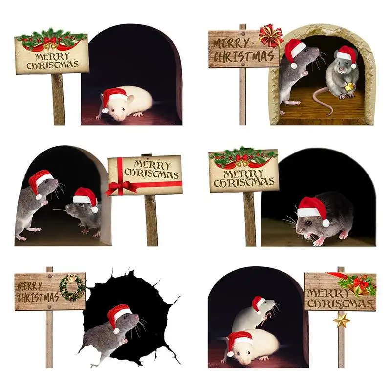 Pack of 6 3D Mouse Hole Wall Stickers Christmas Cute Mouse Hole Fun