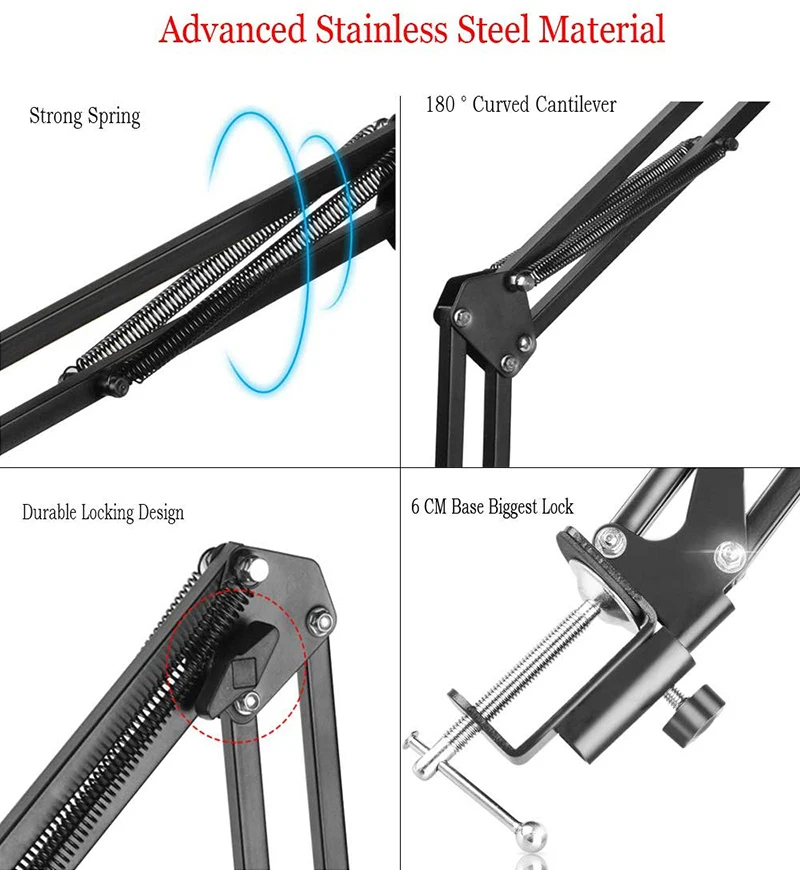 -Премиум стальные материалы: крепление для телефона имеет прочную и регулируемую стальную рукоятку, обеспечивает долговечность и легкую стабильность, обеспечивая более точное и стабильное позиционирование, чем дизайн gooseneck, без тряски.