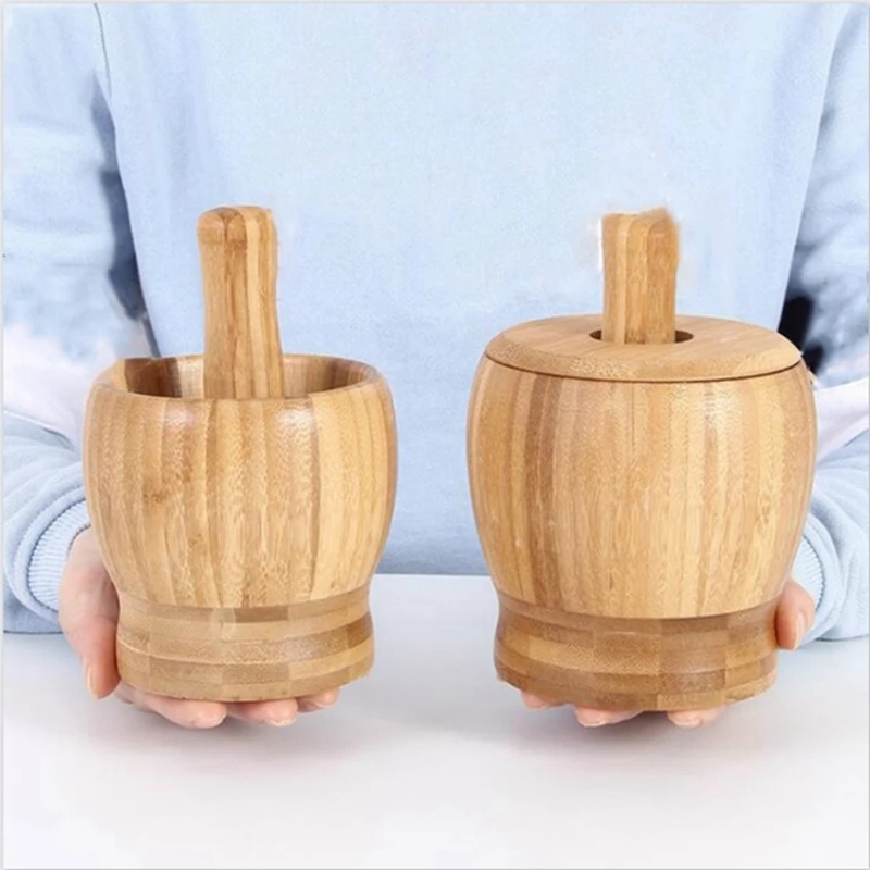 2 шт. бамбуковая баночка для чеснока для домашней кухни, пищевая начинка, креативная шлифовальная машина для чеснока с крышкой, молотый чеснок