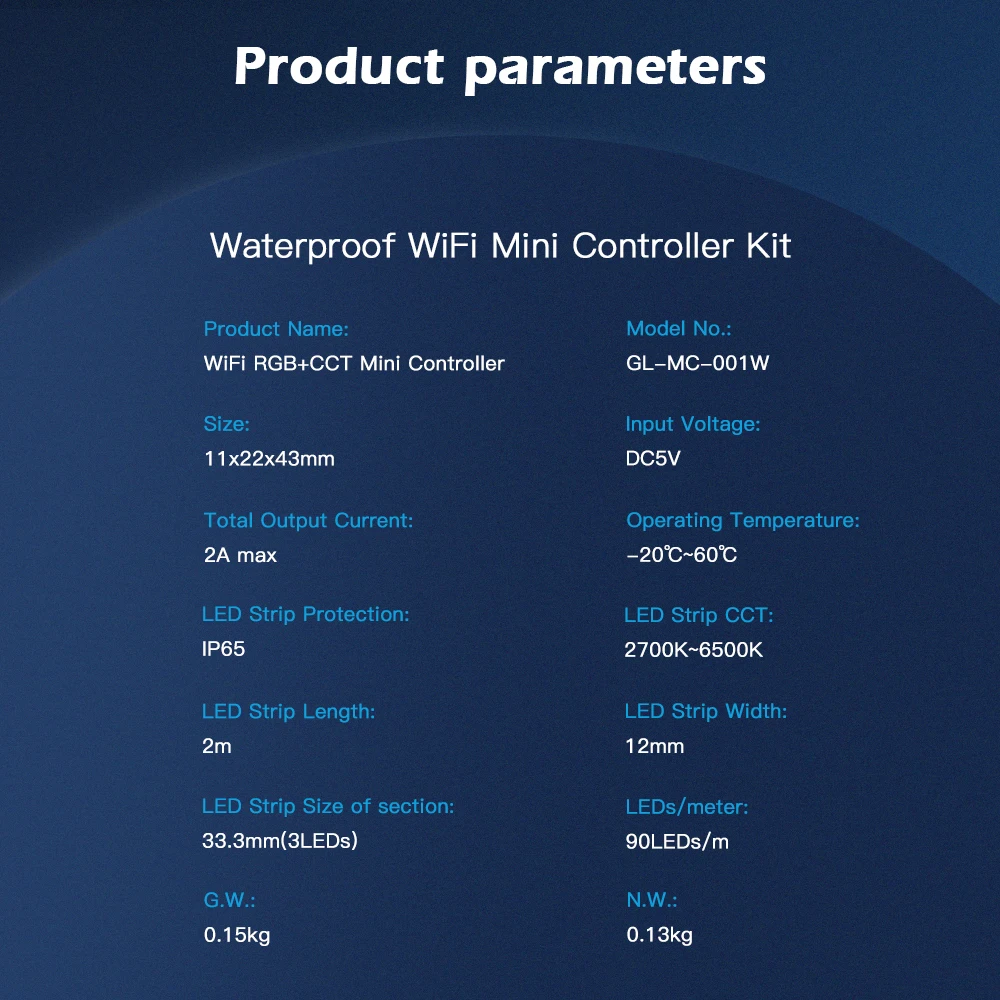 Название продукта: умный WiFi беспроводной RGBCCTMini светодиодный контроллер