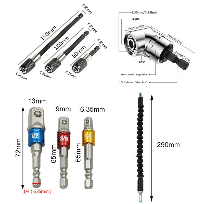 Подходит для электрических, пневматических отверток и других шуруповертов электроинструментов, продольных сверл.