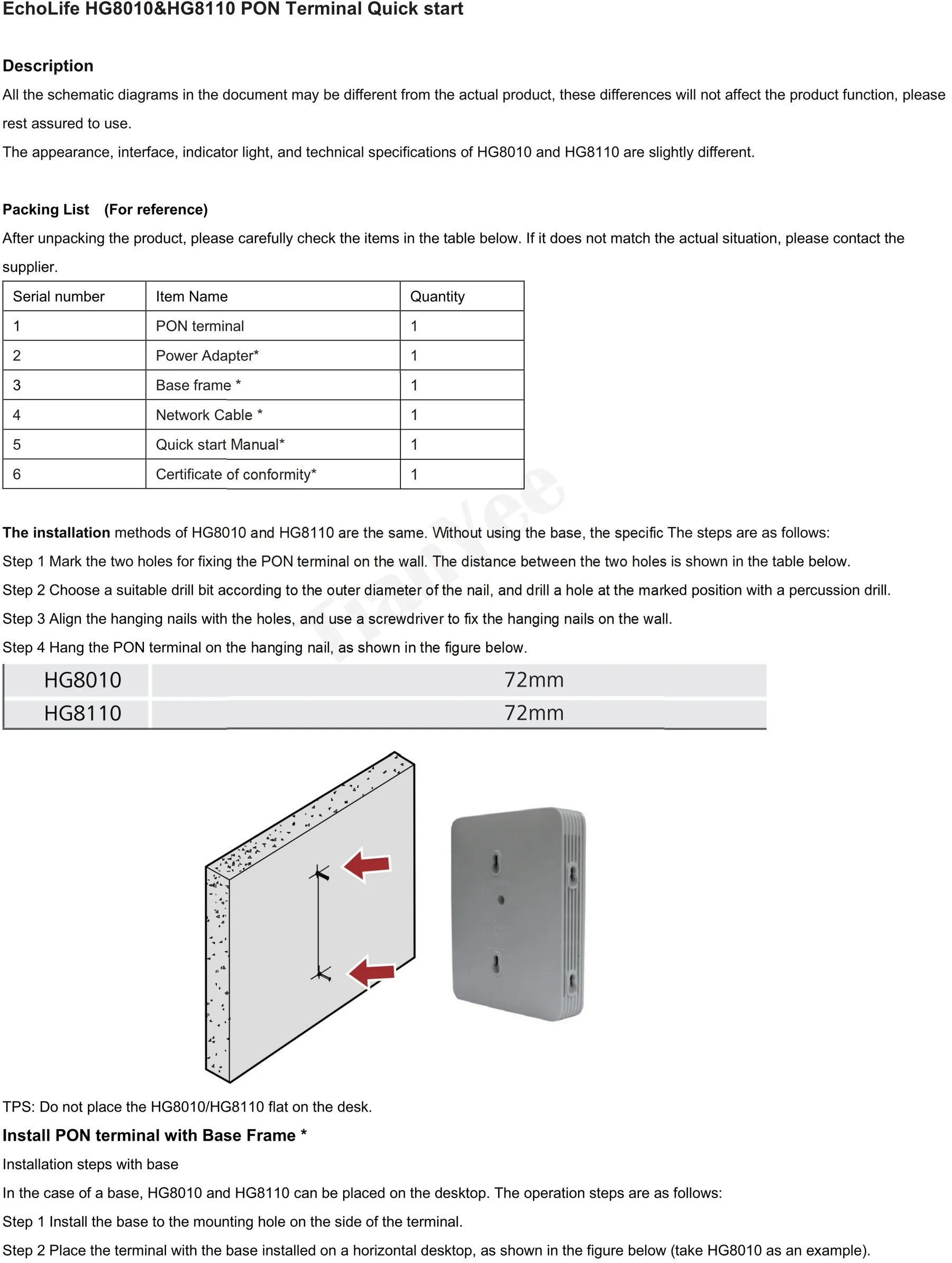 Чтобы избежать любых недоразумений и споров или после покупки,1. Пожалуйста, убедитесь, что ваш olt поддерживает сторонние вечерние (HW) ONU терминал. 2. Убедитесь, что вы хорошо оснастили конфигурацию модели bridge ONU.Если вы не уверены, пожалуйста, дважды проверьте у нас перед заказом.
