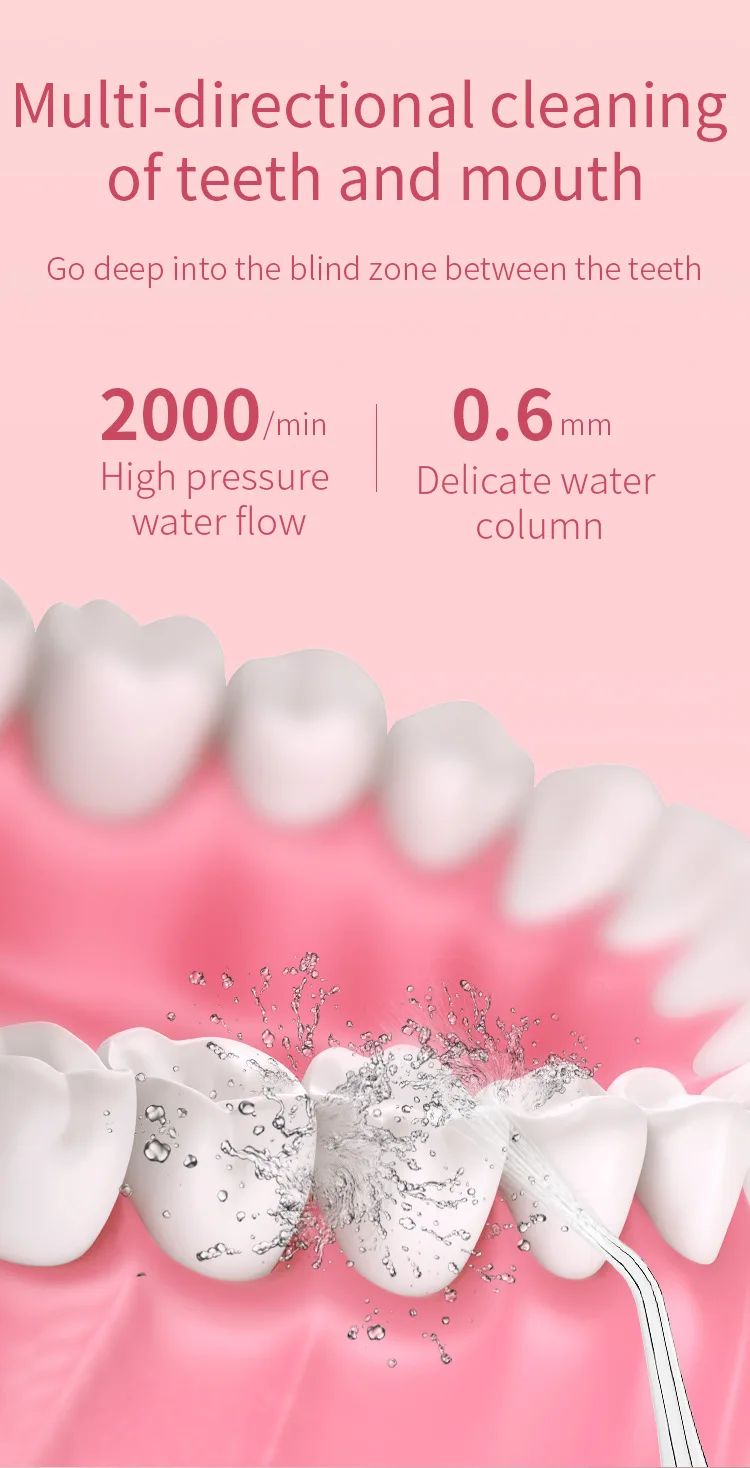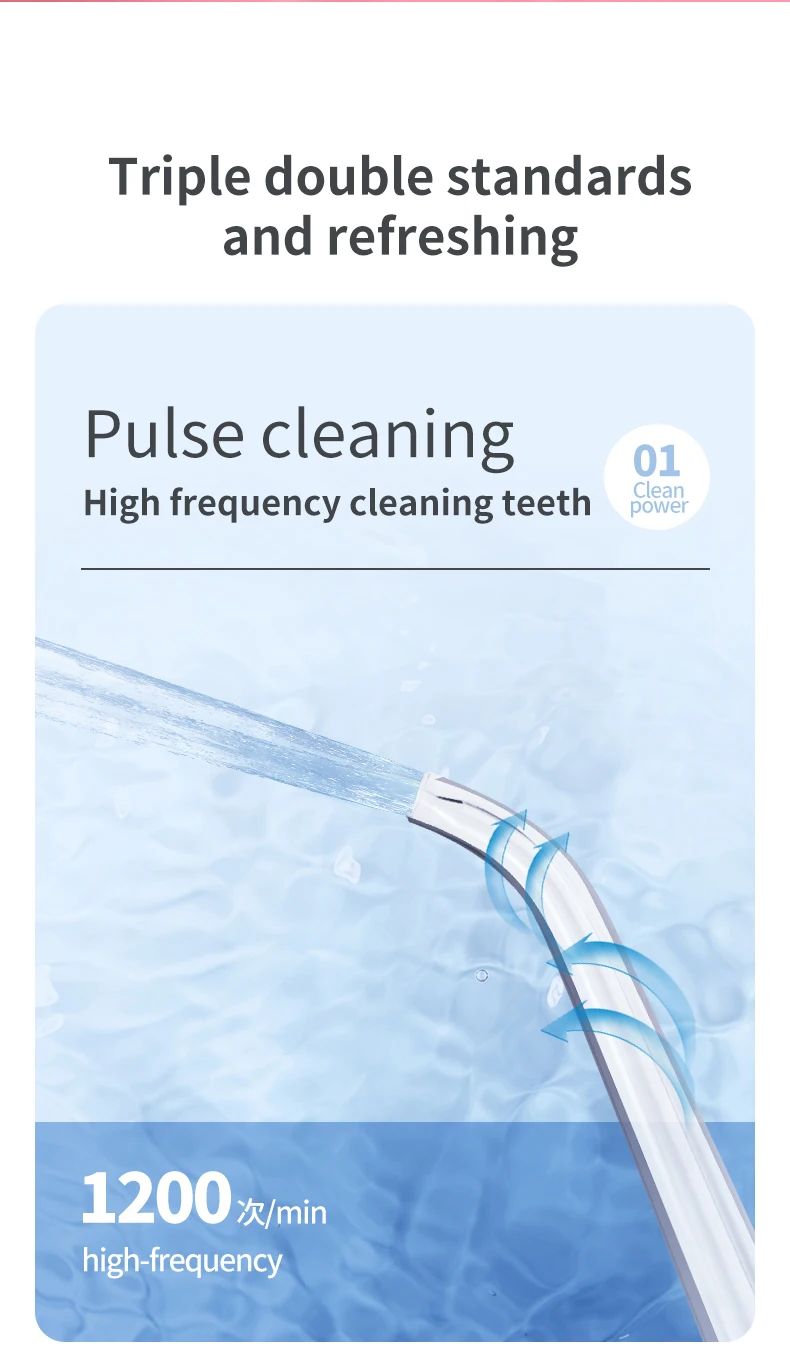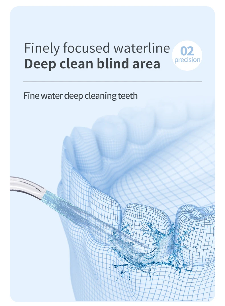 Глубокое очищение между зубами и нижним пределом десны, использует комбинацию давления воды и пульсаций, очищает глубоко между зубами и ниже линии десен, где регулярные поплавки не достигают.
