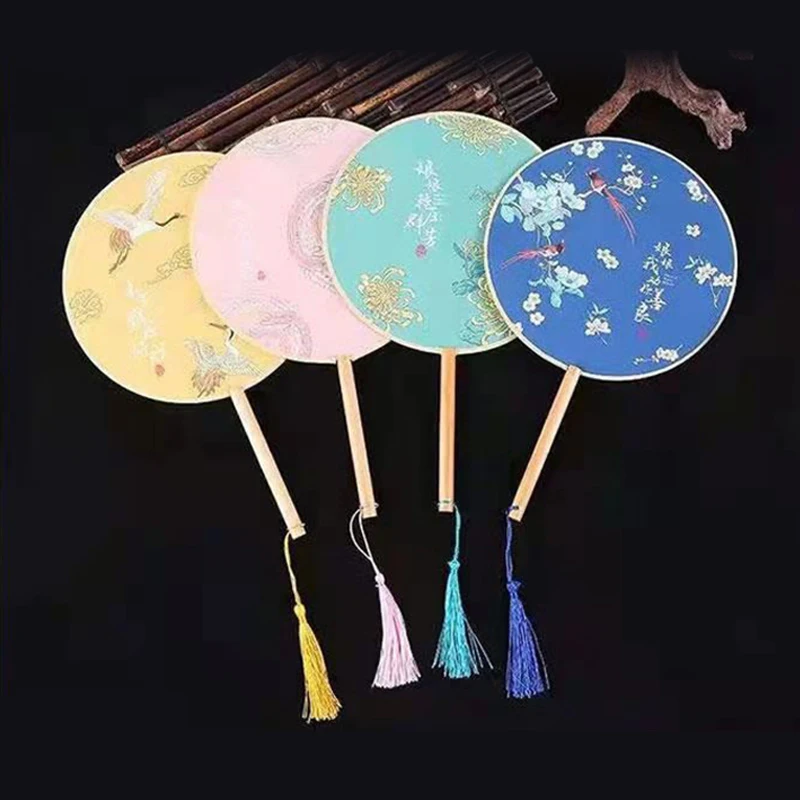 Винтажный круглый веер с длинной ручкой и кисточками для танцев Hanfu круговой веер старинный китайский стиль классический напечатанный круглый веер для свадьбы
