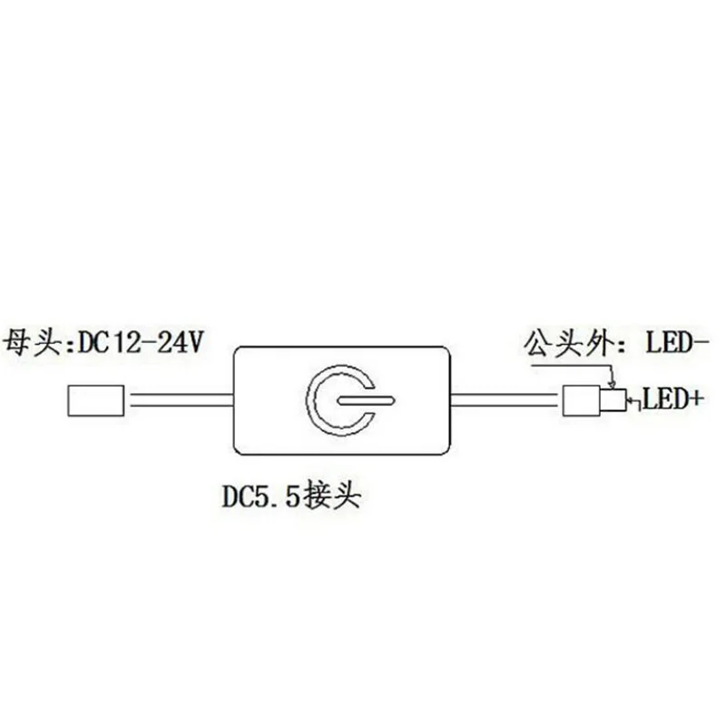 Универсальный монохромный СВЕТОДИОДНЫЙ Диммер может быть включен/выключен, а яркость любого 12VDC или 24VDC светодиодный продукта может быть уменьшена с 10% до 100% с помощью PWM цепи. Сенсорный индукционный контроль полного диапазона регулировки интенсивности и управления вкл/выкл. Максимальная нагрузка составляет 3 А, В и 5,5 мм цилиндр Разъем питания с мужской головы и женский манекен головы используется для подключения суп серии источника питания.