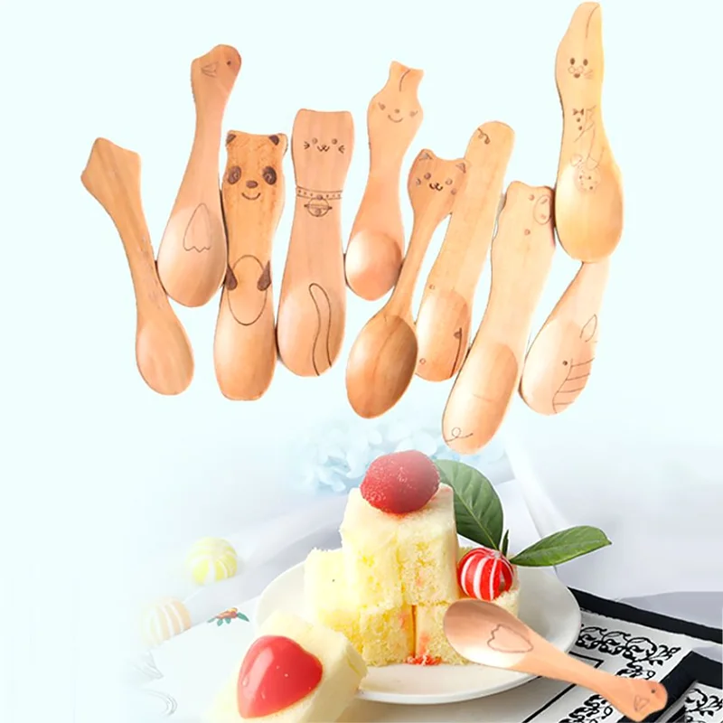 Милая кошка Панда Свинья животные деревянные ложки для детей детская посуда столовая ложка для супа для кормления кухонные инструменты аксессуары новые