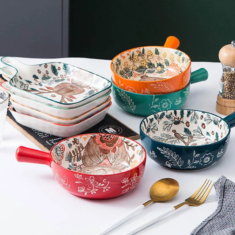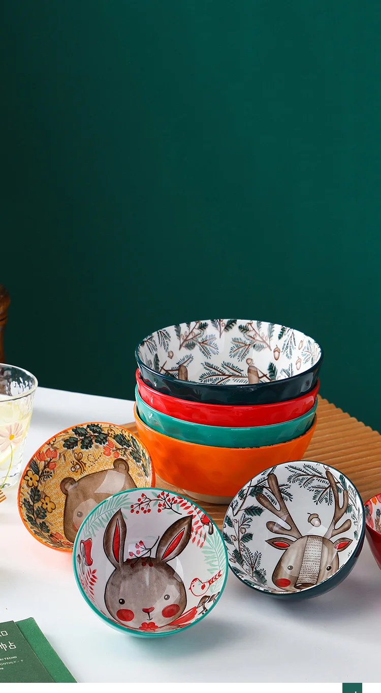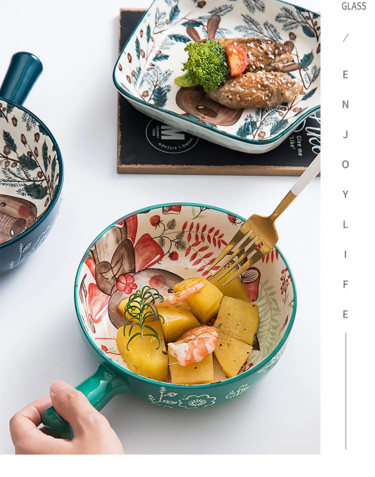Лесные животные керамическая посуда для выпечки домашняя подглазурная чаша с одной ручкой бинауральная форма для выпечки тарелка для салата кухонные принадлежности Посуда