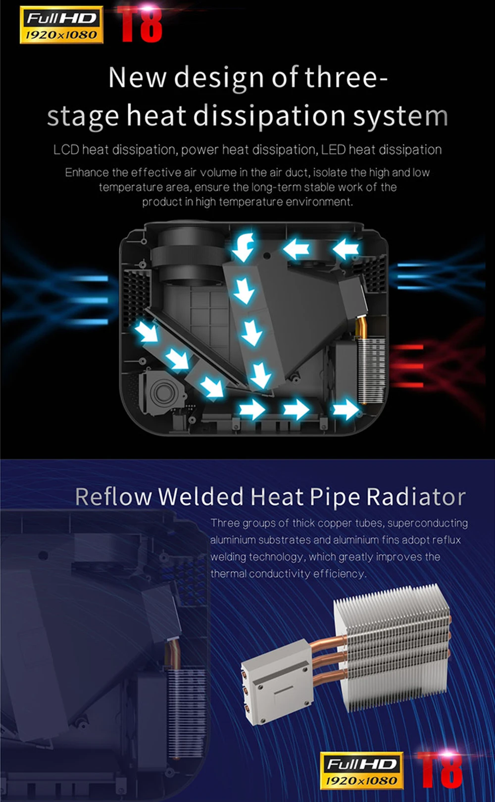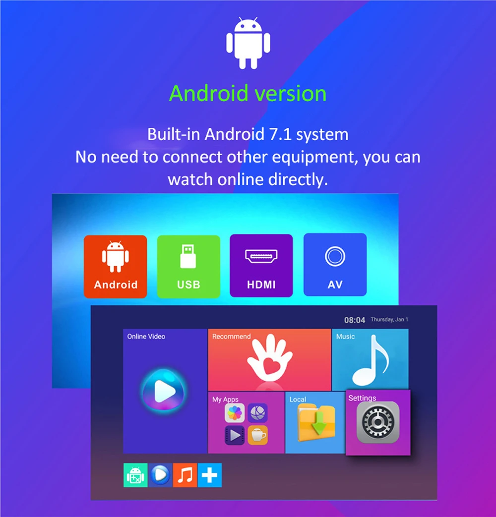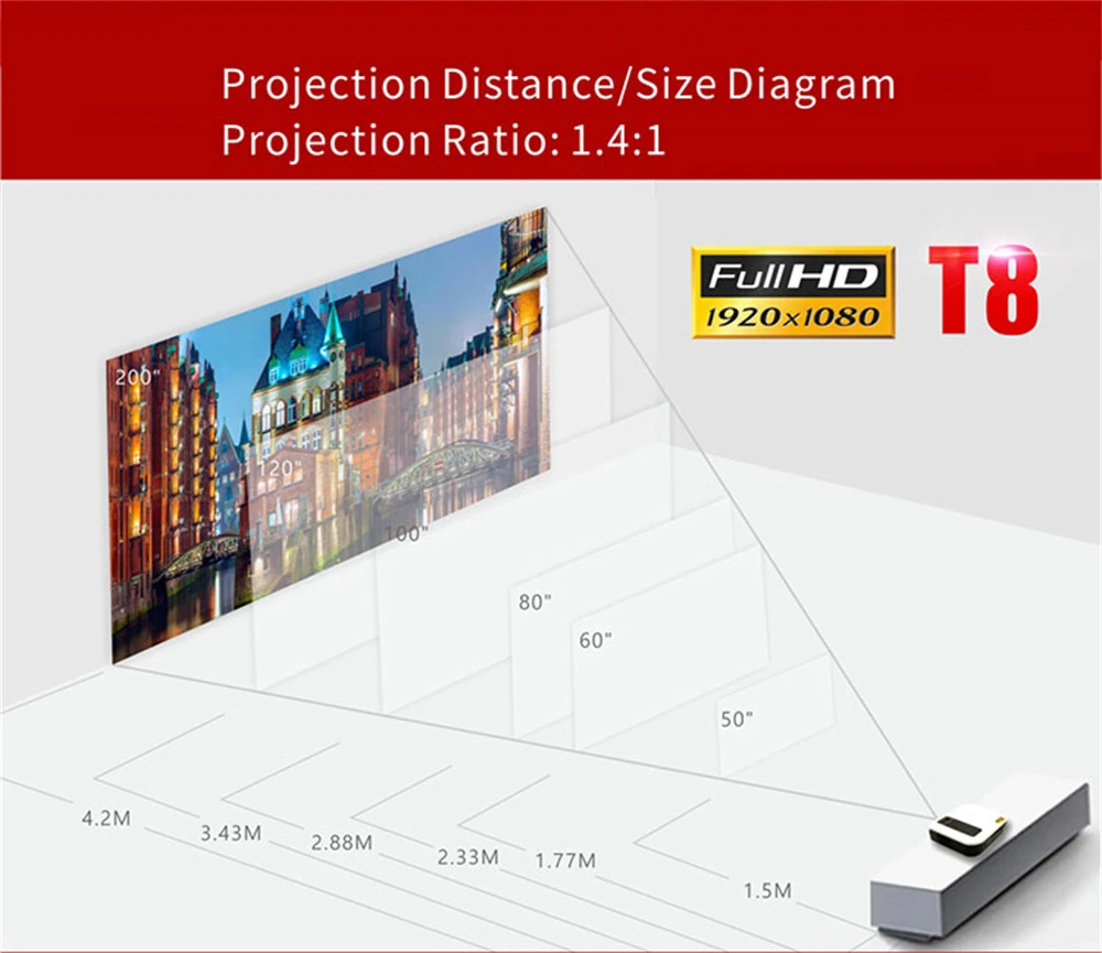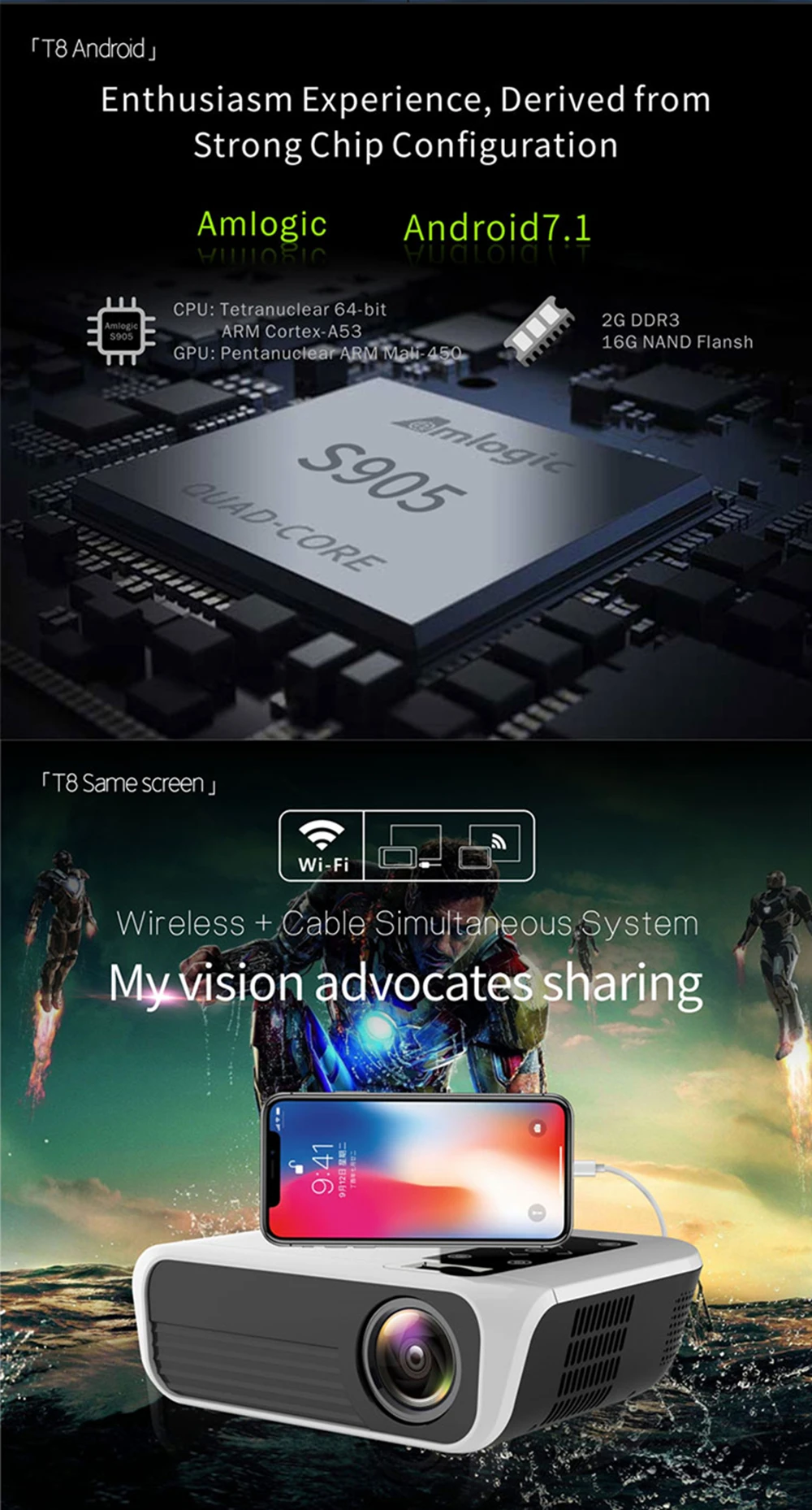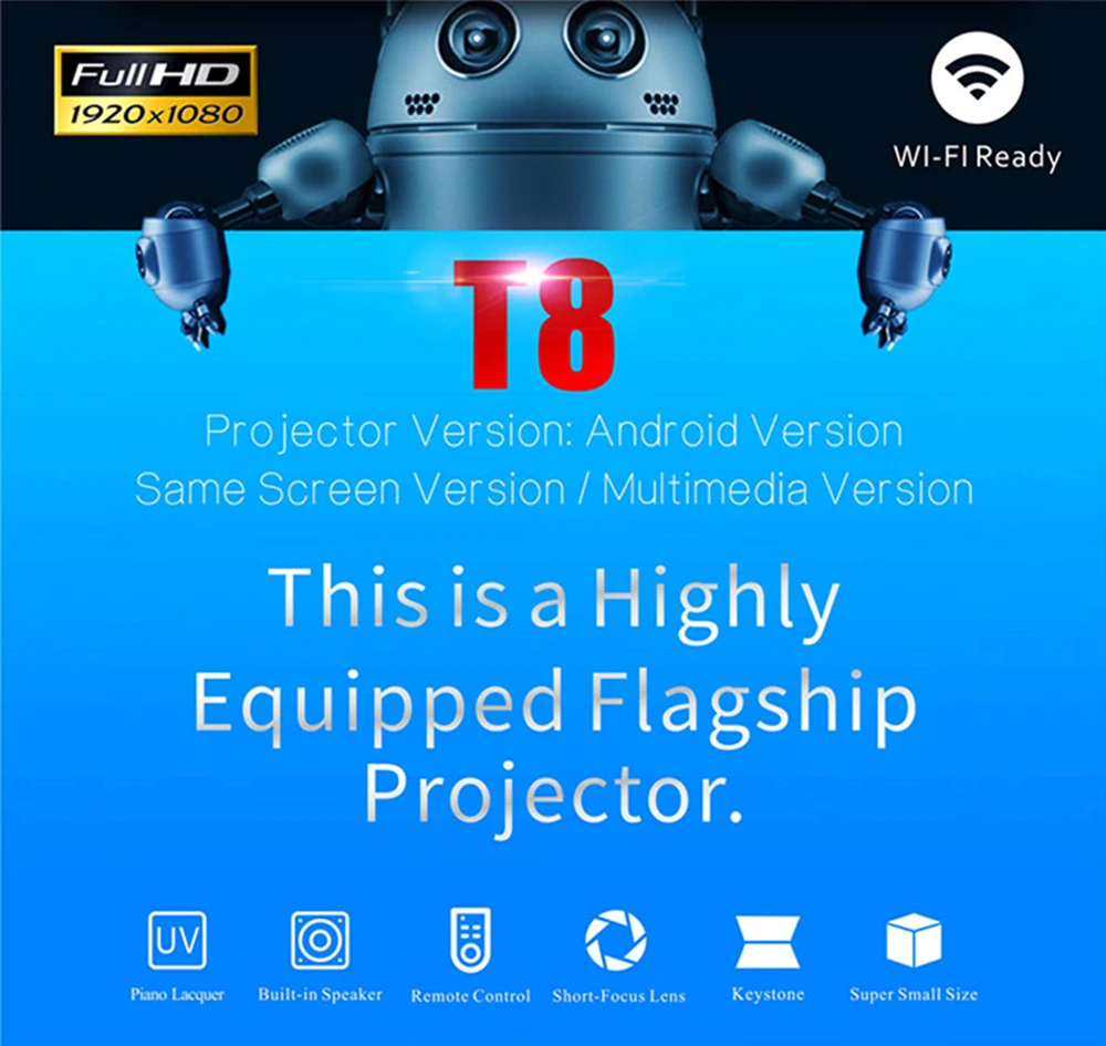 VCHIP ST8 Projector For Home Theater Supports 1080P WiFi TV LED HDMI USB Portable Media Player Smart Phone Beamer With GiftModel:ST8
