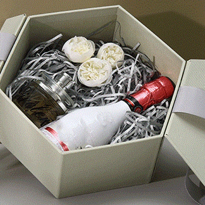 Эта Шестигранная коробка украшена бантом, что делает ее изящной и красивой.
