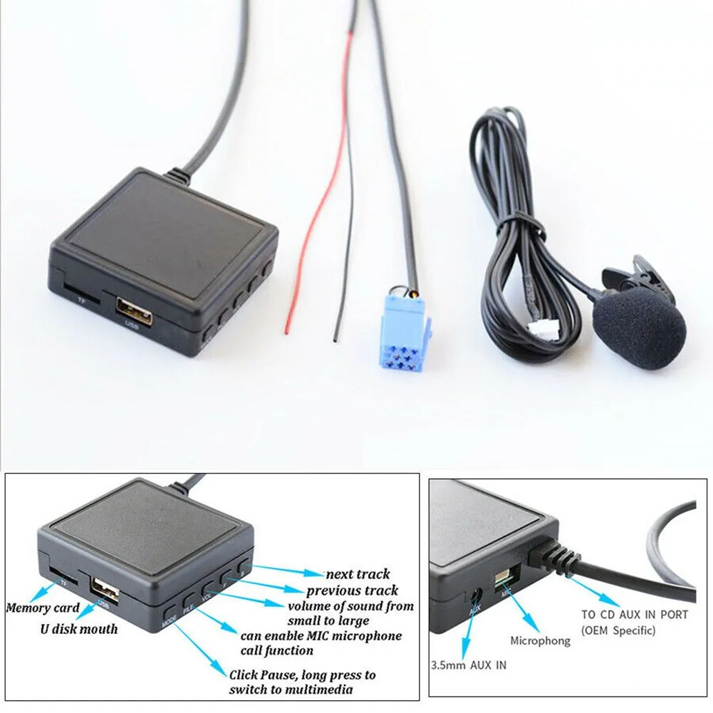 -Подходит для телефона или планшета к модулю bluetooth. И выберите Aux с вашего радио, затем вы можете использовать свой телефон для воспроизведения музыки через Автомобильные колонки.