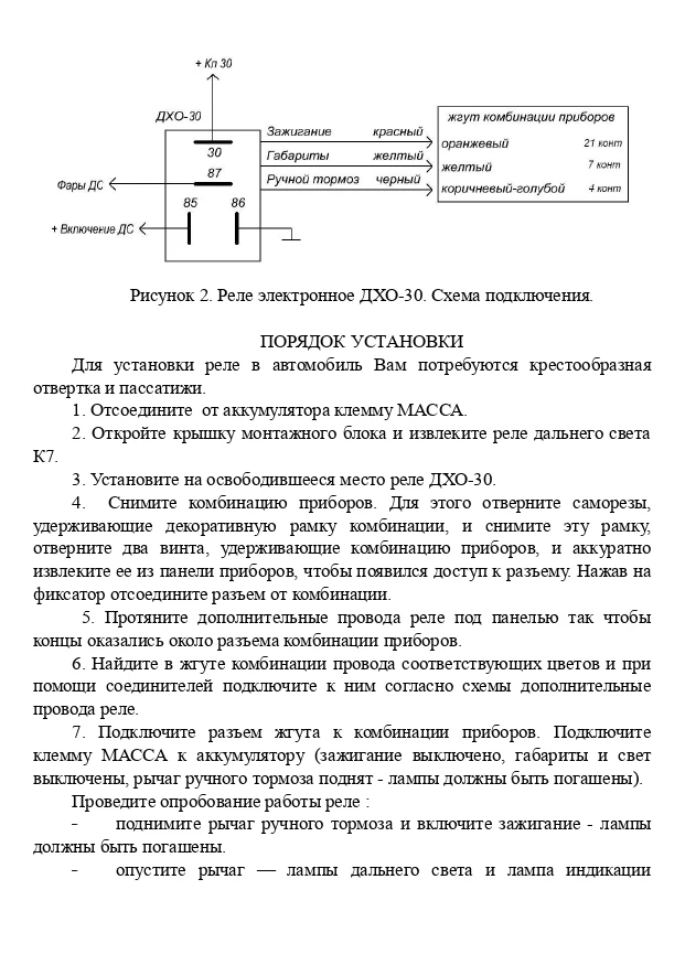 Реле выполнено в размере стандартного реле и имеет три дополнительных провода для подключения к жгуту проводов комбинации приборов. Это необходимо для реализации правильного алгоритма работы дневных ходовых огней.