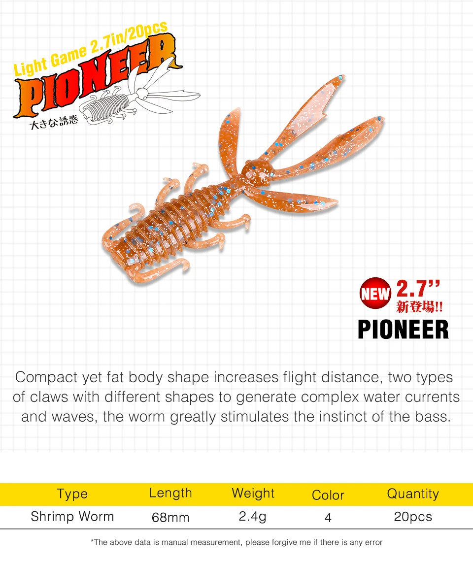 TSURINOYA PIONEER compact, но жировая форма тела увеличивает расстояние полета, два типа когтей с различными формами для создания сложных водных токов и волн, червь значительно стимулирует инстинкт басов.
