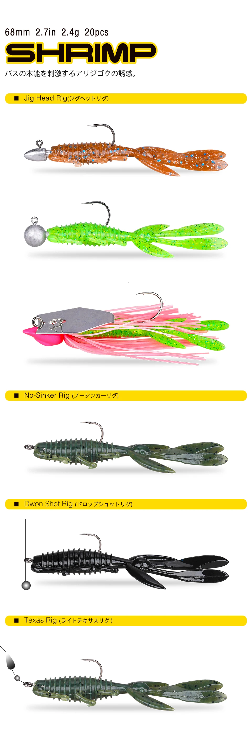 TSURINOYA 68 мм 4 сумки набор креветок Мягкая приманка 2.7in 2,4g светильник игровой пионер мягкий червячный силиконовый бас ацзин универсальность рыболовные приманки