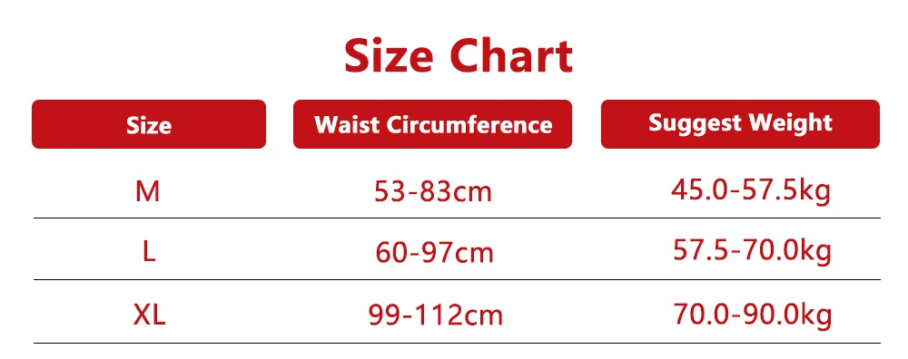 M (подходит для окружности талии 53-83 см, рекомендуемый вес 45-60 кг);