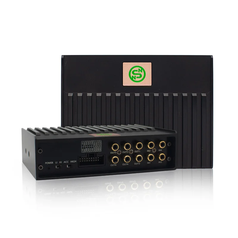 ➤DSP с усилителем --- 6 каналов цифровой сигнал процесс с 4 каналами автомобильный усилитель 50 Вт RMS * 4 при 4 Ом. Большая частота колеблется от 20 Гц-20K Гц. 4 входных канала 6 выходных каналов;