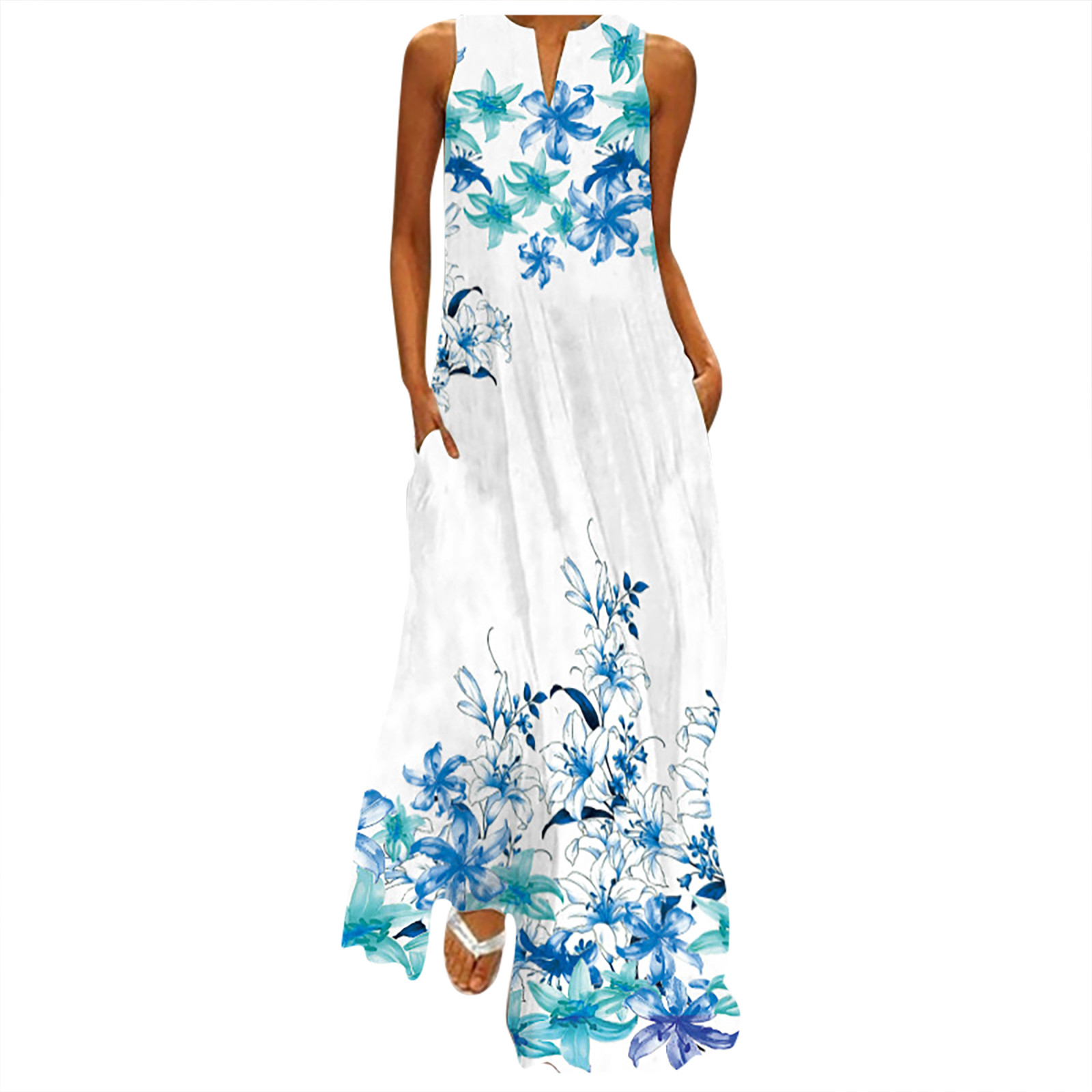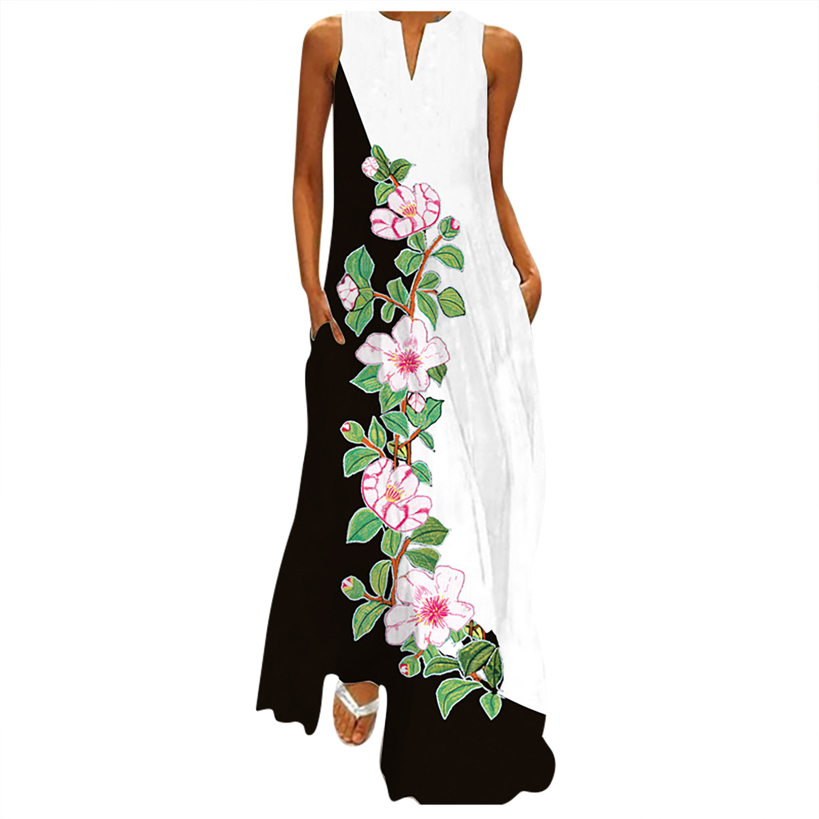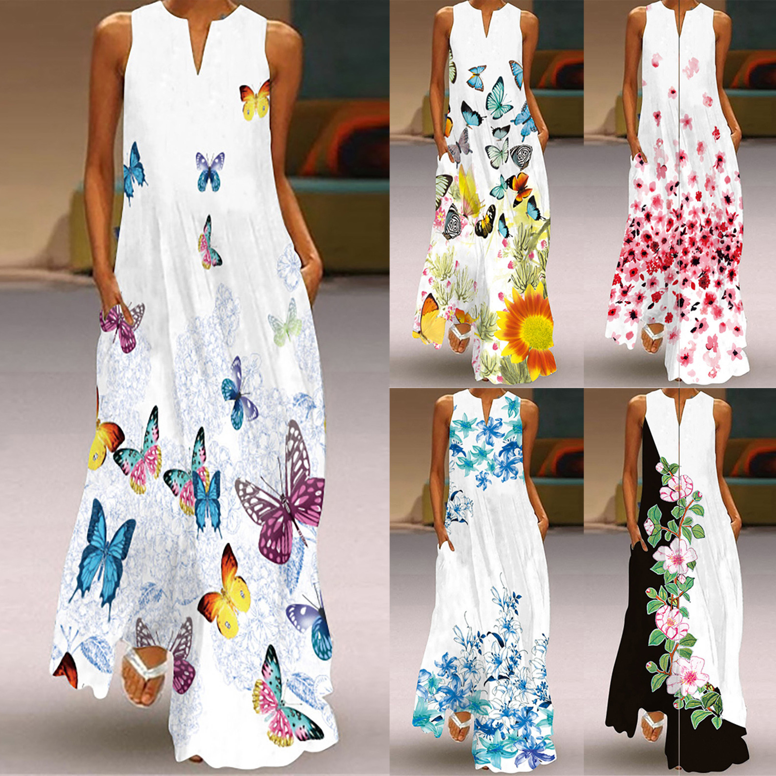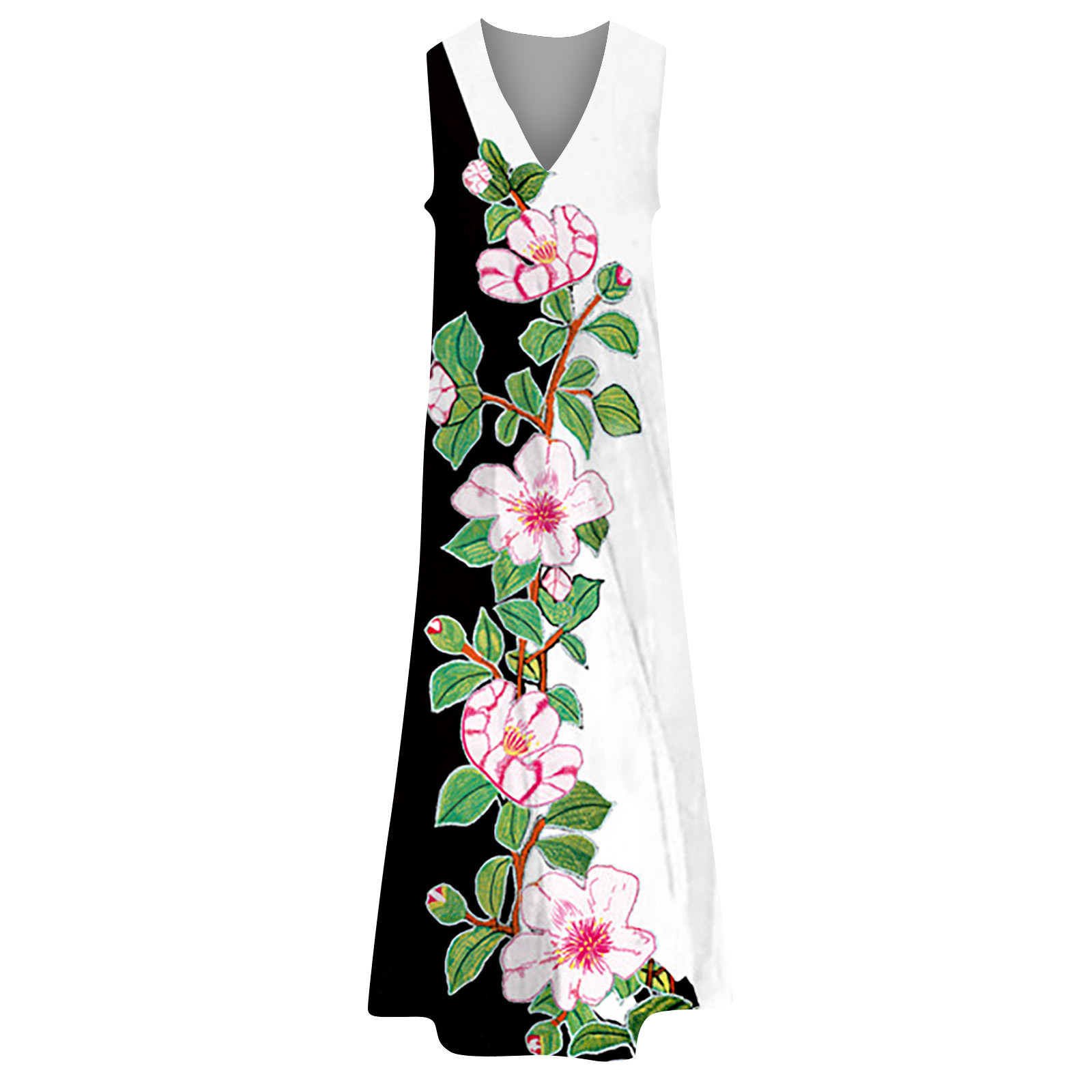 Женское печатное платье без рукавов с v-образным вырезом с разрезом, мешковатое длинное платье-кафтан