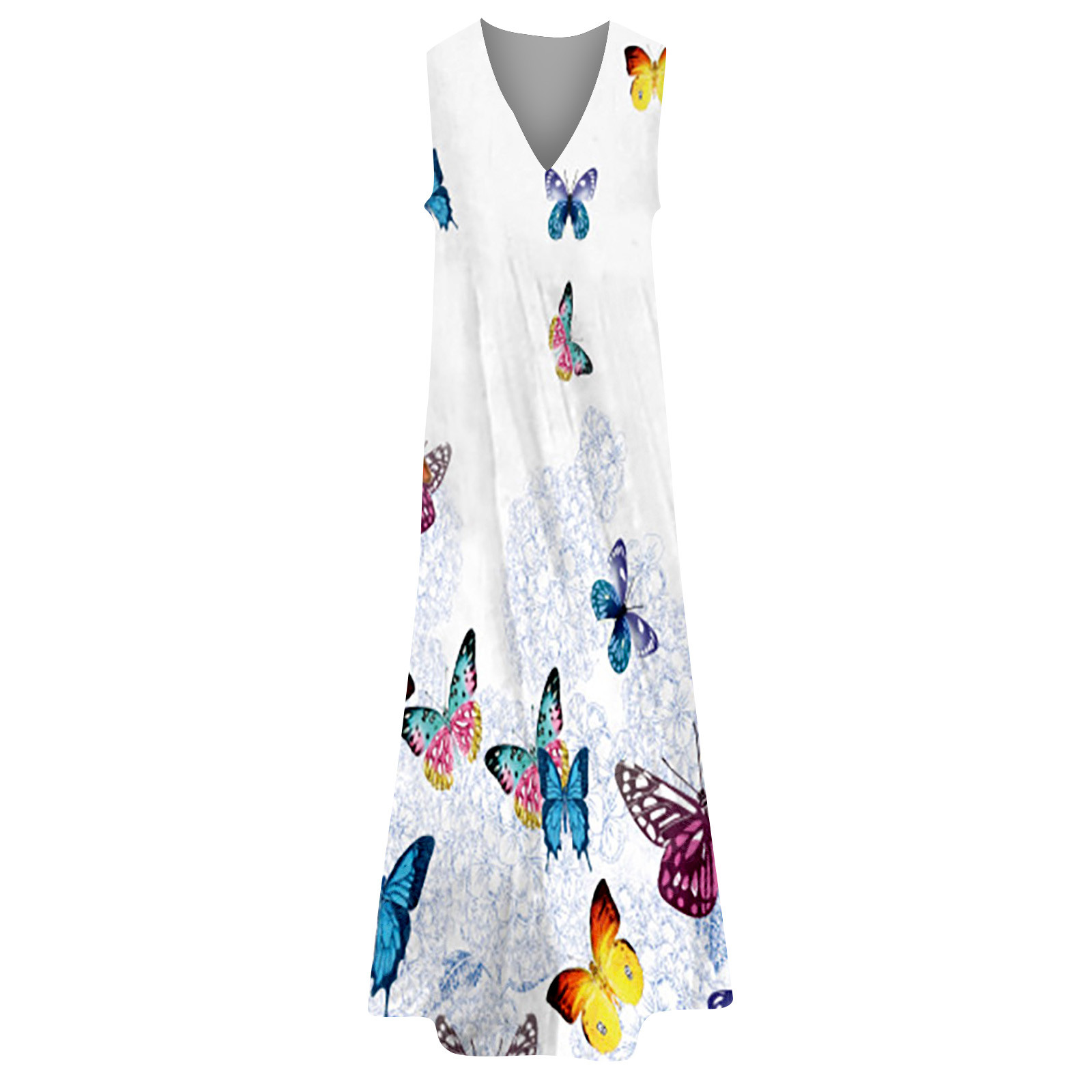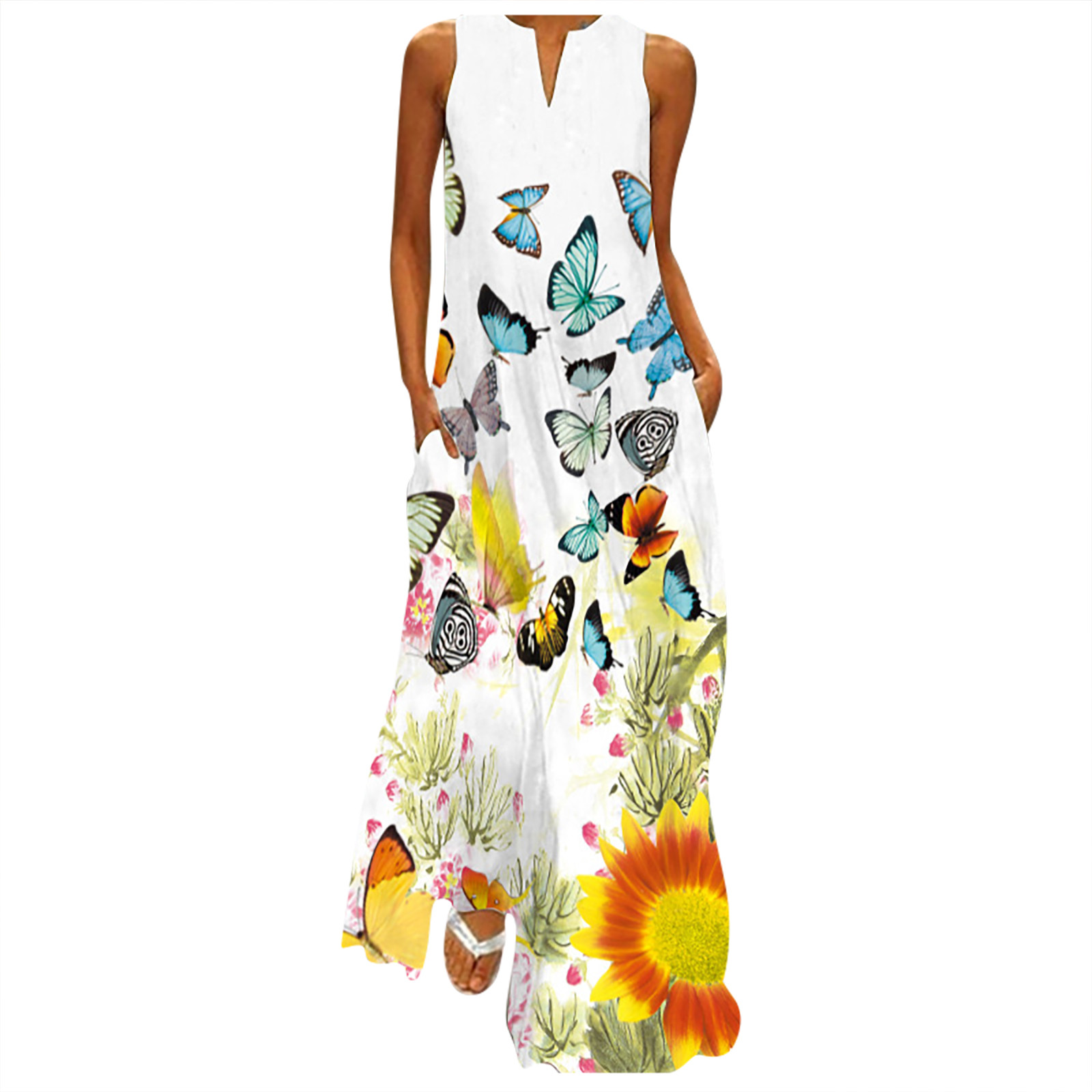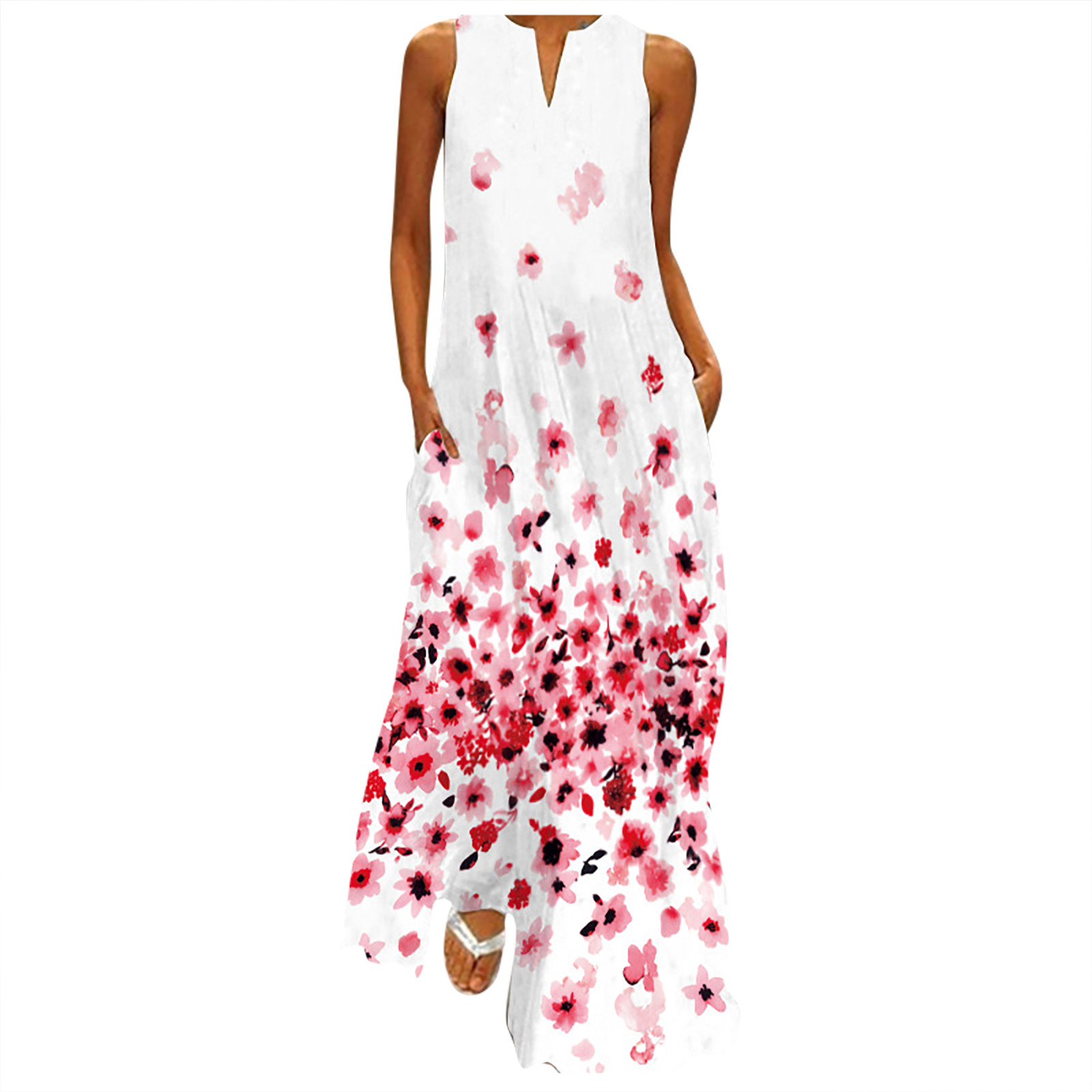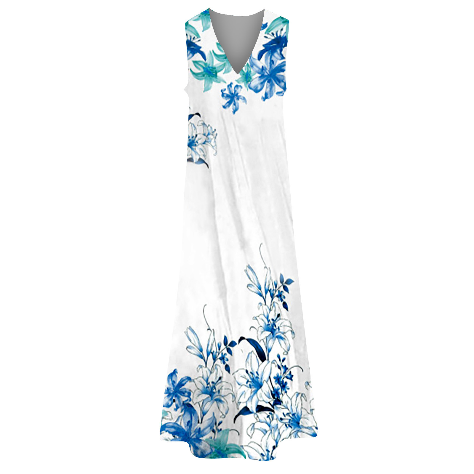 Женское печатное платье без рукавов с v-образным вырезом с разрезом, мешковатое длинное платье-кафтан