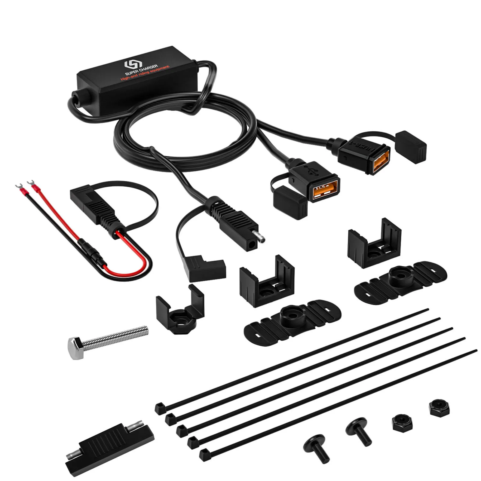 Автомобильное зарядное устройство для мотоцикла с двумя USB зарядными головками