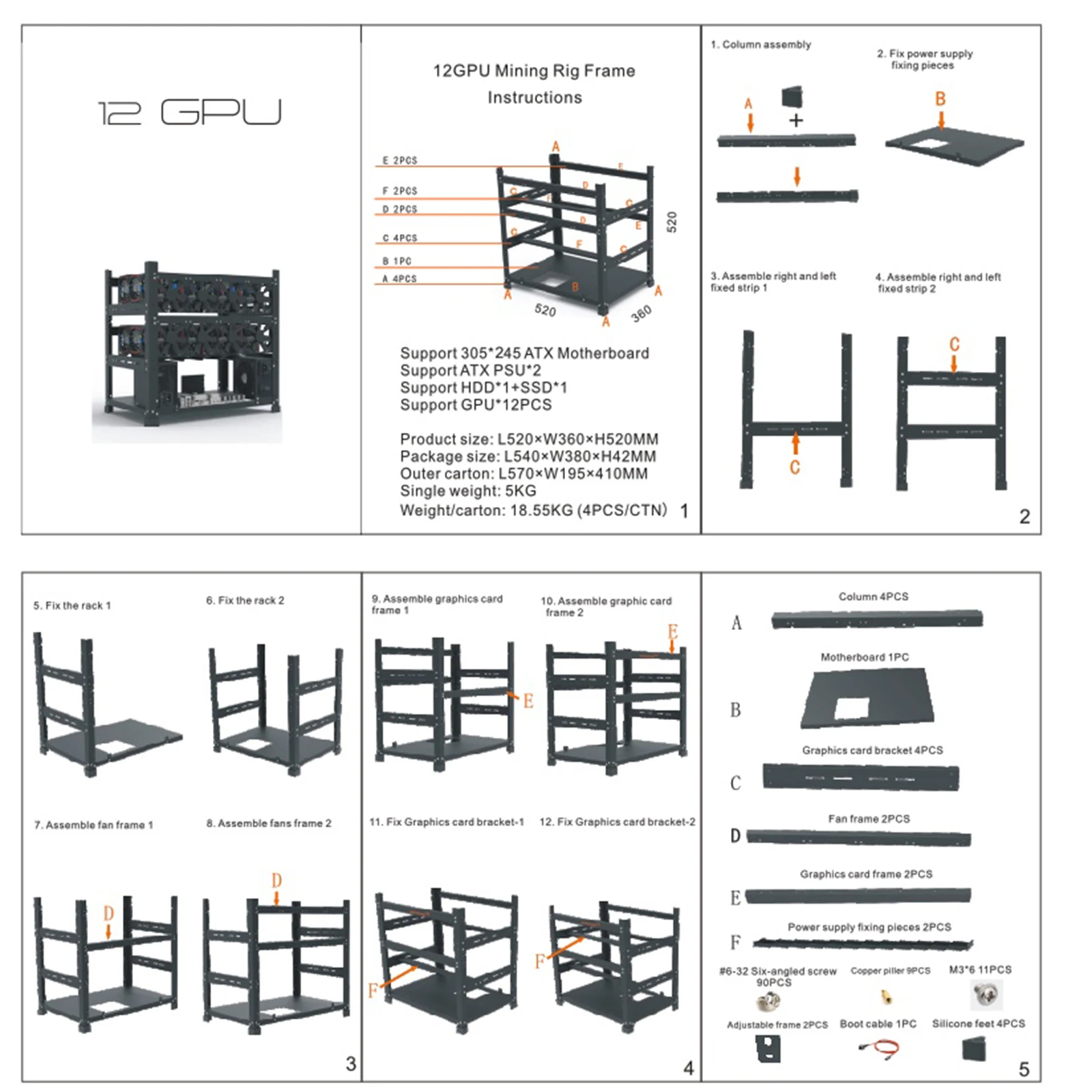 (Неподвижная стойка 12 шт, фиксированная видеокарта 8CPS, фиксированный источник питания 4 шт)