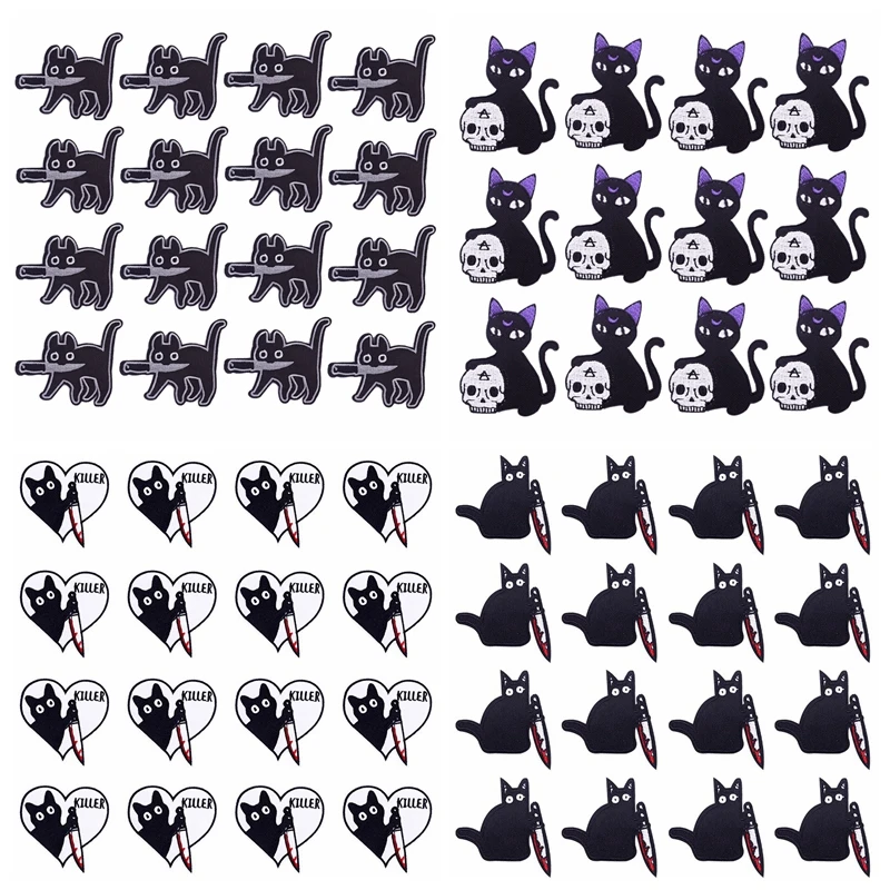 Pulaqi 10 шт. котов и ножей, утюжок на заплатках, сделай сам, вышитые нашивки для одежды, оптовая продажа, полосатые хиппи значки, наклейка, аппликация