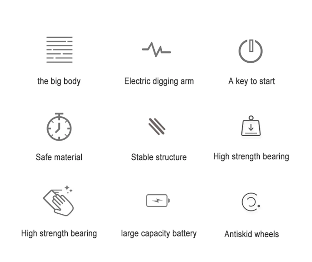 Функция продукта: Электрический копающий рычаг, светильник, музыка, вперед, назад, поворот налево, поворот направо