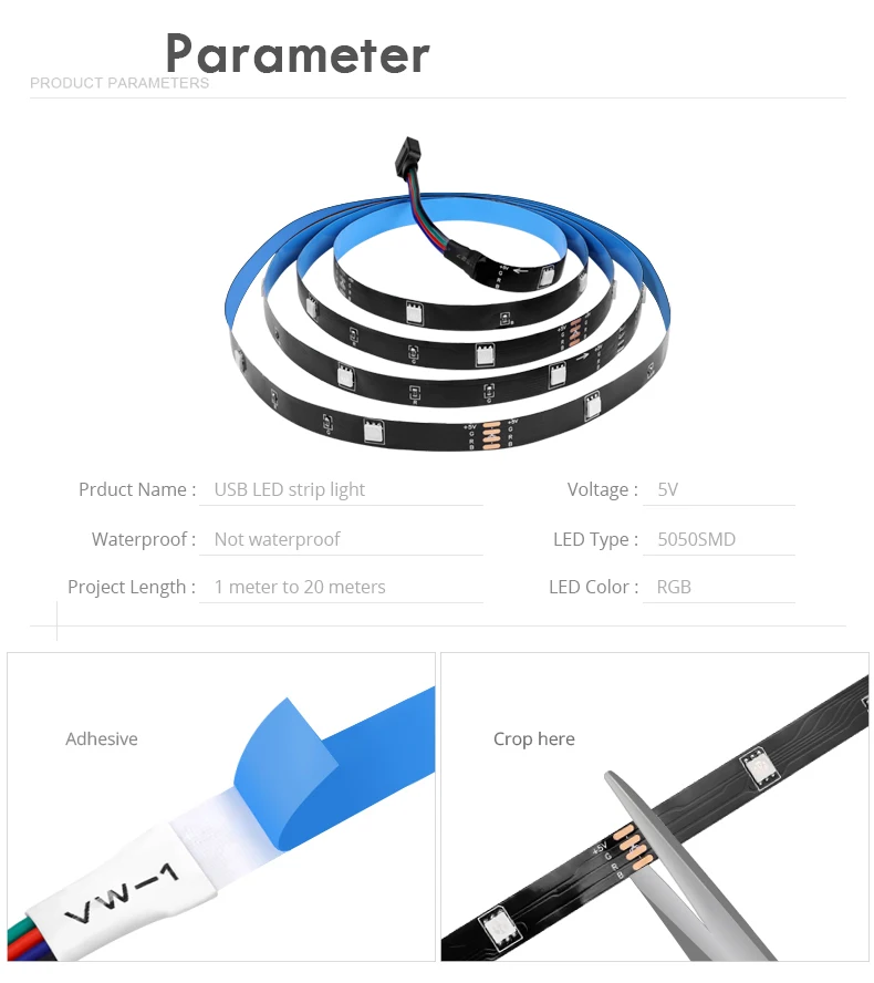 A. 2 meters or above length LED Strip Option required DC5V 2A power supply ,otherwise,the product may not work correctly.