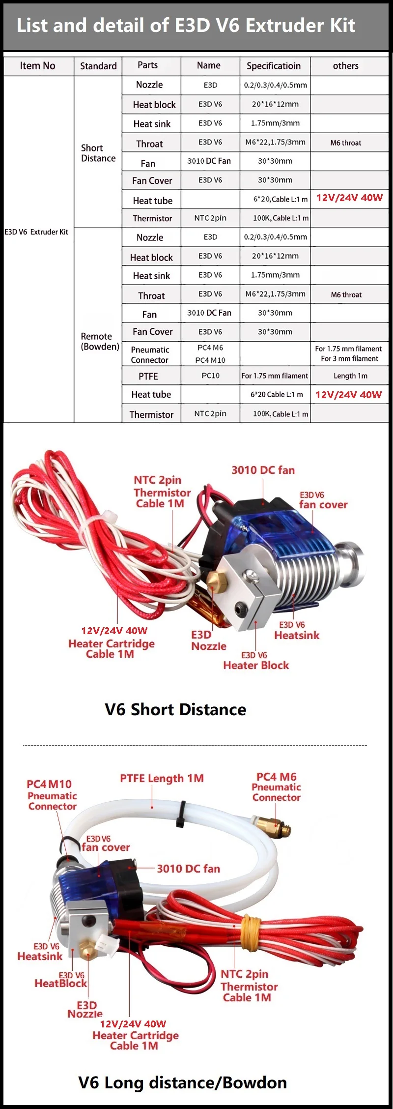 1. Этот 3D-принтер j-головки Hotend применяется для 1,75 мм и 3,0 мм нити Уэйд или Боуден экструдер