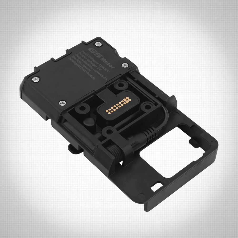 Он должен быть установлен для поддержки навигации, вы можете зарядить мобильный телефон, камеру, bluetooth-адаптер и камеру через навигационный кронштейн.
