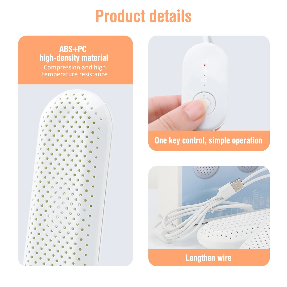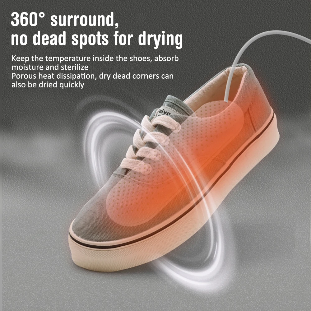 Пористая теплоотдача, окружность 360 °, отсутствие мертвых пятен для сушки, сохранение температуры внутри обуви, поглощение влаги и стерилизация, делает вашу обувь сухой и удобной.