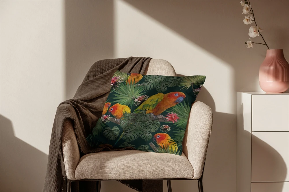 The cushion cover can be washed in a washing machine, and the cushion cover will not fade.