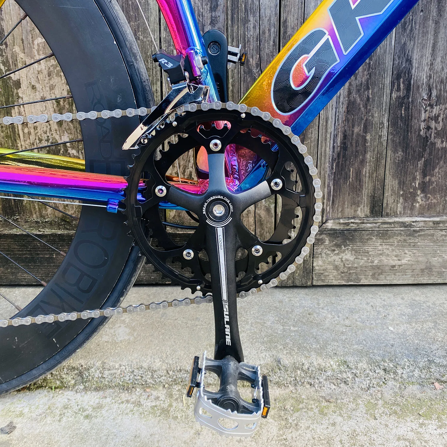 1. Рама: 52 см2. Колесо: 10 спиц/3 Спицы/70 мм обод сплава 32 отверстия3.Frok: 22,2 мм * 20 см (длина), подходит для шины 25C4. Коленчатый набор: 170 мм рукоятка половина алюминиевого сплава 42T /52T BCD:130 BB: 110,5 мм5. Подседельный штырь: 25,4 мм6. Ствол: 25,4 мм7. Руль: горизонтальный руль 31,8 мм8. Цепь: KMC 1/2 "* 1/8"9. Педаль: Тайвань Wellgo10. Шина: 23C компас11. Трубка: KENDA 45L12. Гарнитура: 22,2 мм qinghao13. Седло: натуральная кожа14 скоростной набор: Shimano 240015. Тормоз: двойной диск